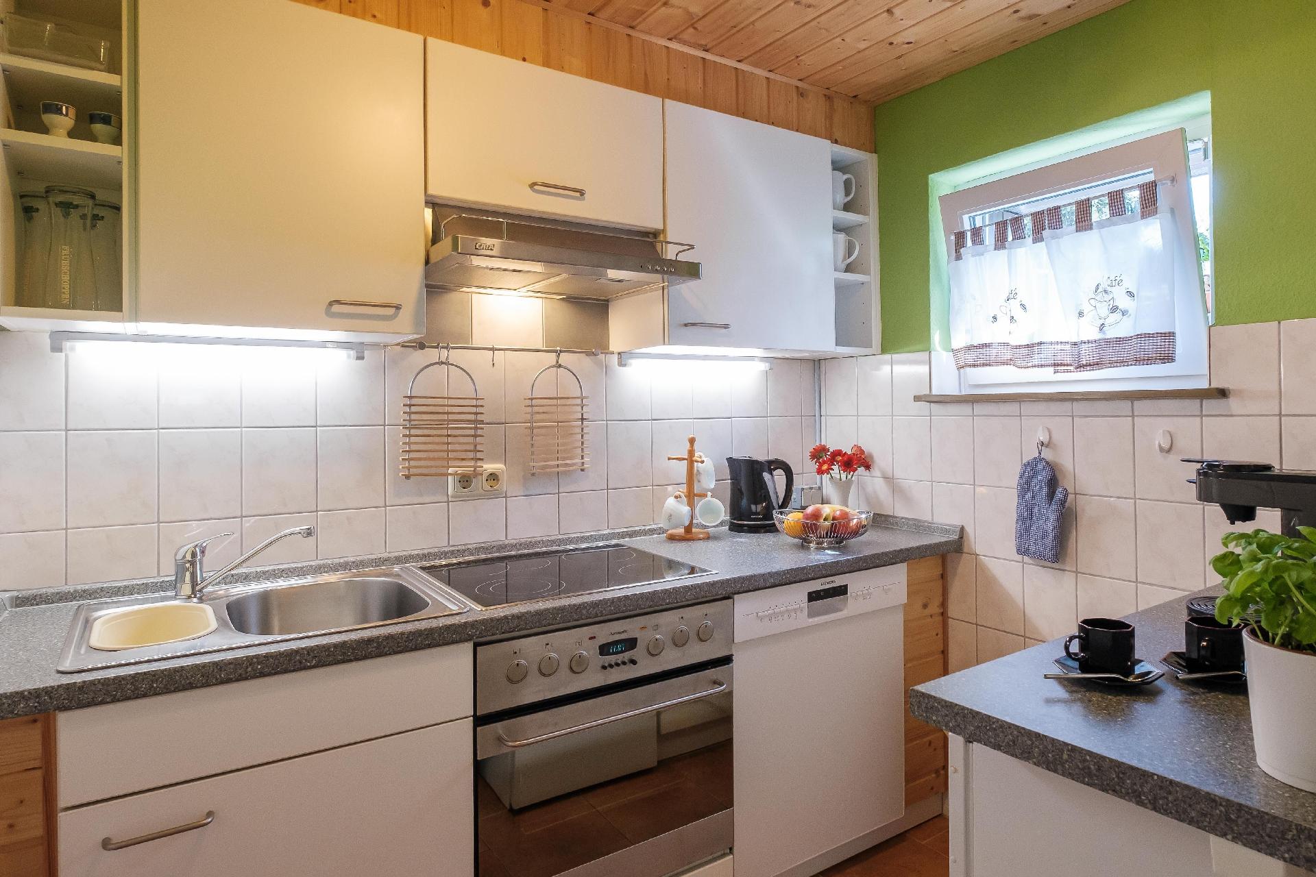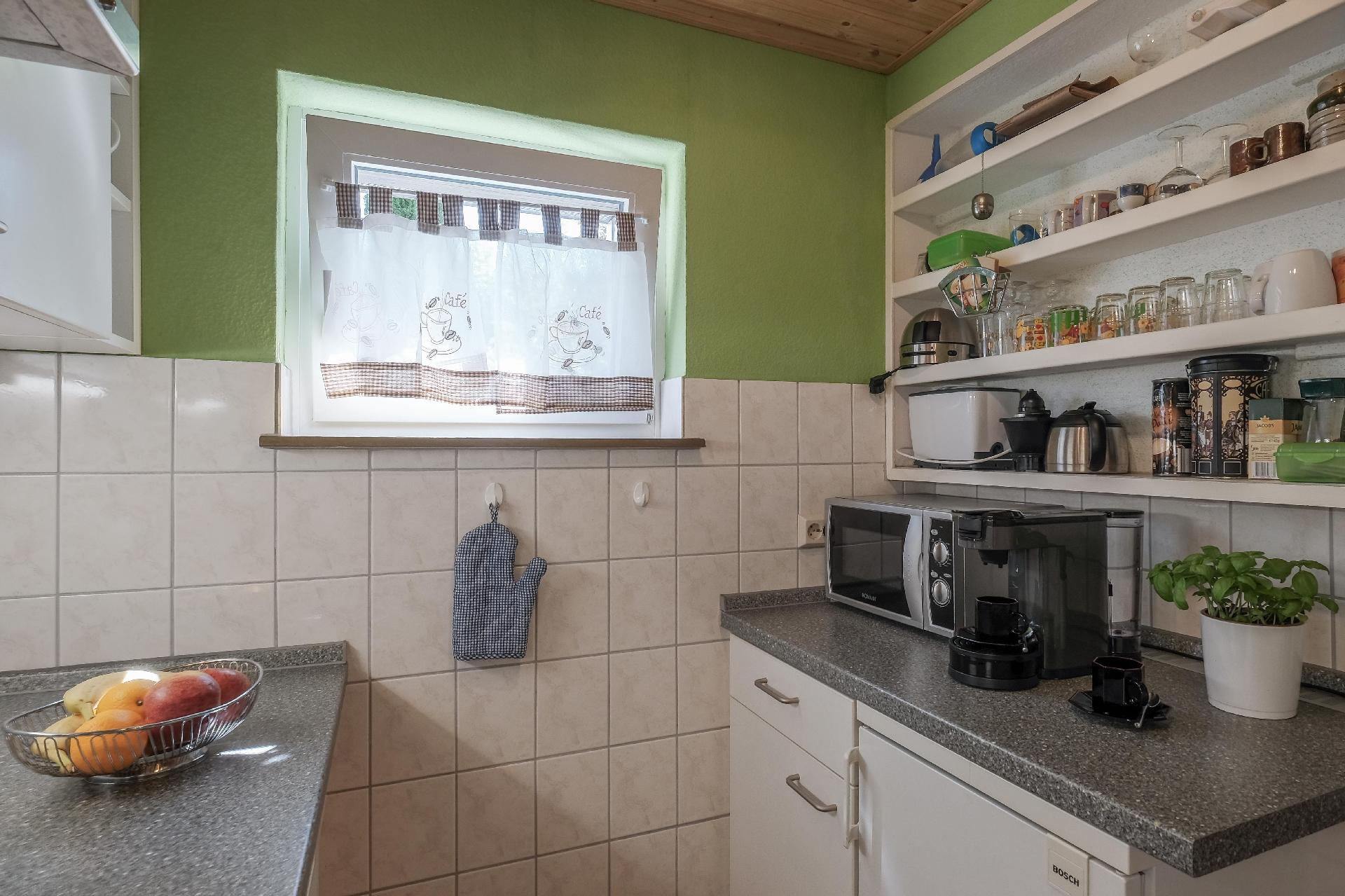 Kochen: Backofen; Ceranherd; Gefrierfach; Herd; Kaffeemaschine; Kaffeepadmaschine; Kühlschrank; Mikrowelle; Spülmaschine; Toaster; Wasserkocher