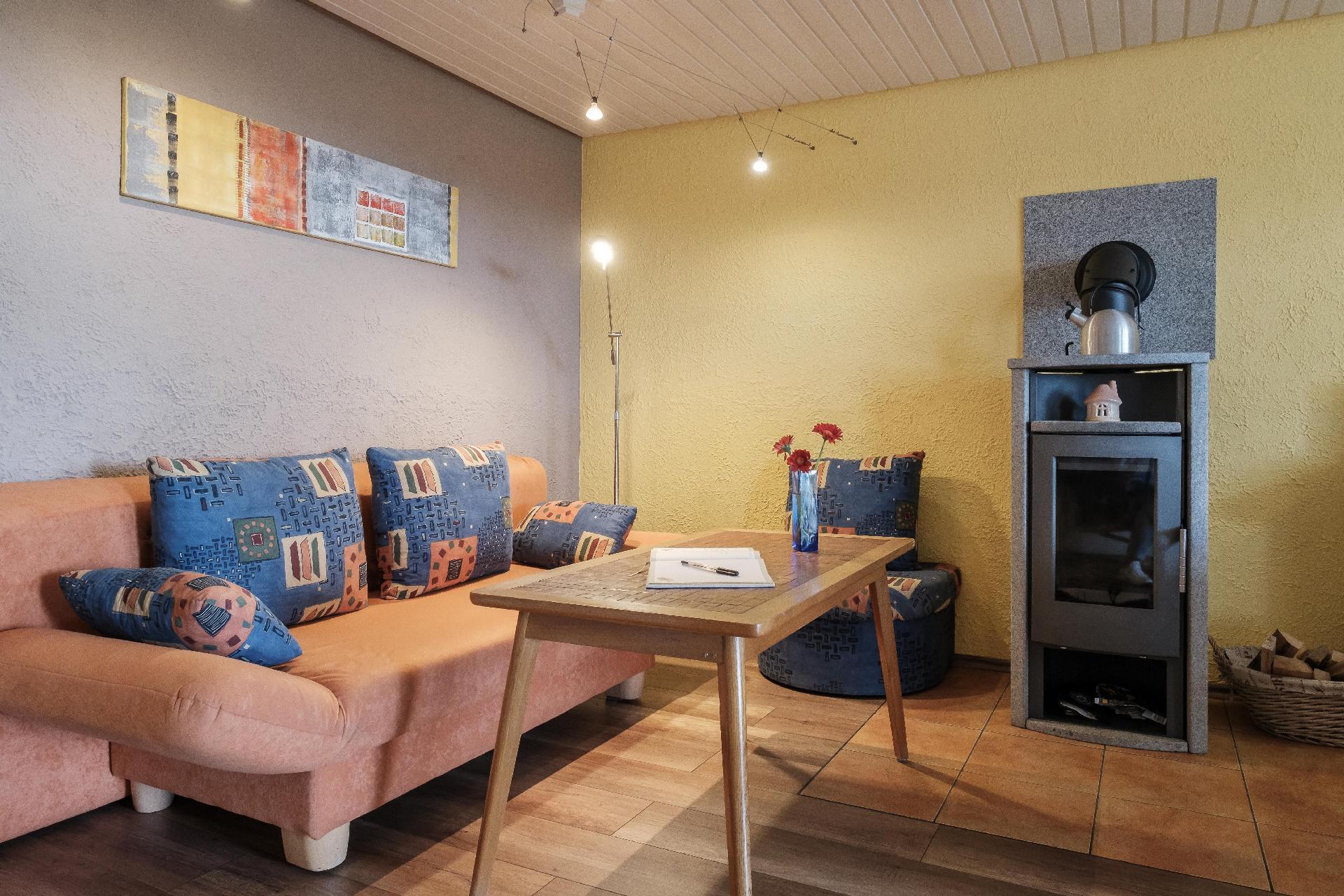 Wohnen: CD-Player; DVD-Player; Kaminofen; Musikanlage; Radio; Satelliten-TV; Schlafsofa; TV