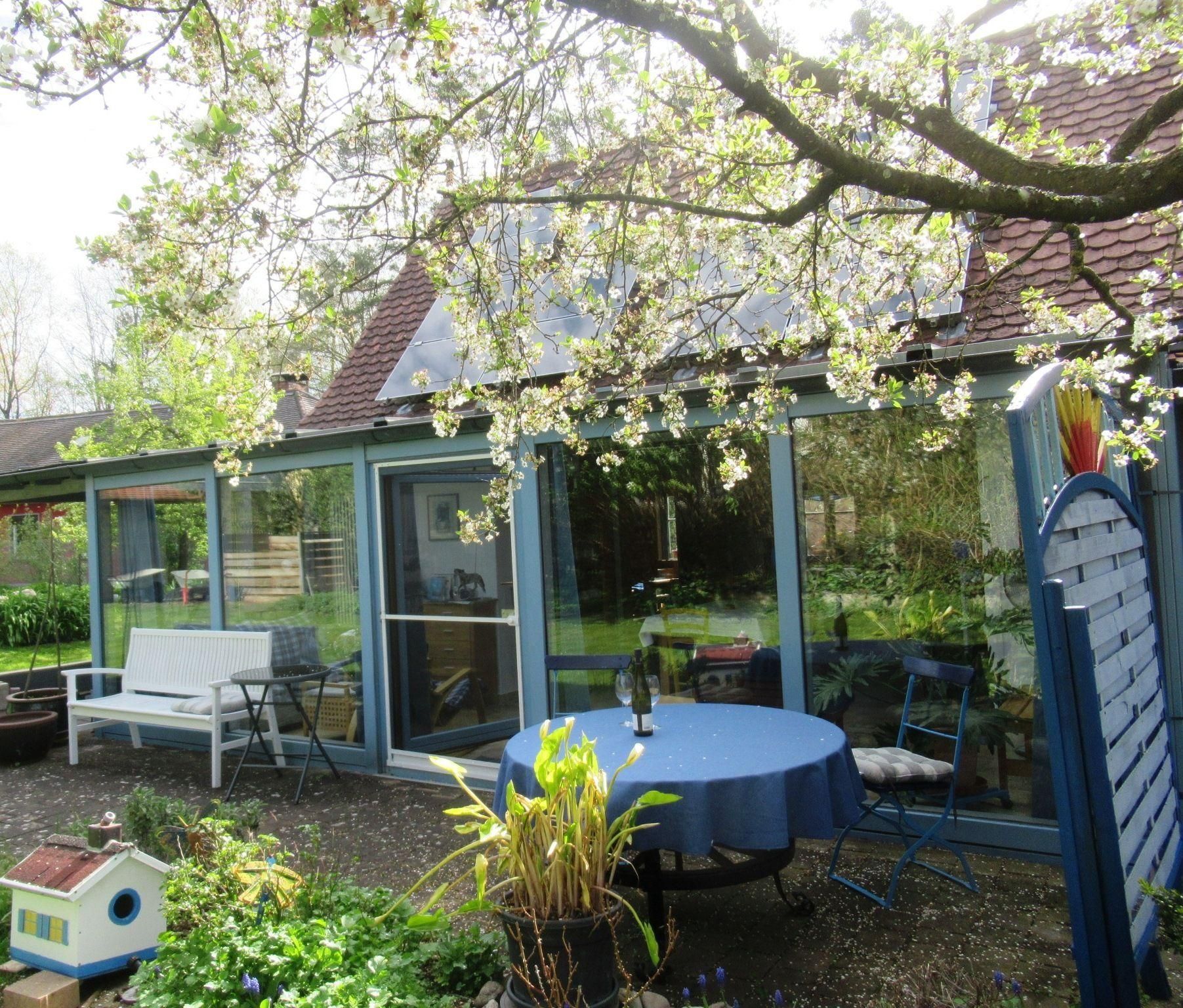 Der Außenbereich unseres Ferienhauses ist ein wahres Paradies. Es bietet Ihnen eine weitläufige Terrasse, auf der Sie die Seele baumeln lassen und in unserem wunderschönen Garten entspannen können. Hunde sind bei uns willkommen. Da uns Katzen und Laufenten unserer Nachbarn besuchen, muss ihr Hund angeleint sein. Eine Schleppleine ist hier hilfreich.