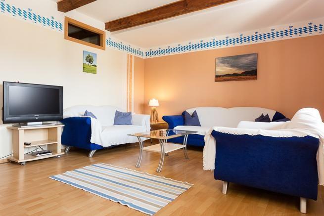 Die Ferienwohnungen haben reine Südlage und befinden sich im Erdgeschoss und Obergeschoss des Nebengebäudes in mitten von Wiesen und Feldern unseres von Landwirtschaft geprägten Dorfes, abseits verkehrsreicher Straßen.