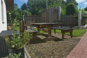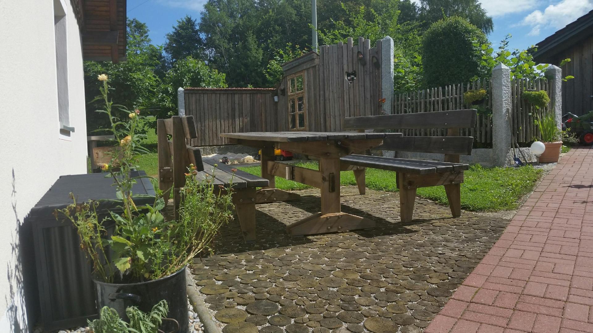 Ein eigenes Gartenabteil mit Sitzgruppe, Grill, Lagerfeuerplatz, Liegen etc. steht Ihnen zur Verfügung. Für Ihre Kinder bietet Ihnen unser Haus einen idealen Beschäftigungsradius. Unsere Haus- und Hoftiere (Alpakas, Hund, Katzen, Merris, Hühner....) würden sich über die Bekanntschaft mit Ihren Kindern freuen. Trampolin, Seilbahn, Outdoor-Tischtennis, Sand, Schaukel, Kinderfuhrpark und vieles mehr ergänzen das Angebot.Abgerundet wird das Angebot durch ein Saunahaus mit Außendusche. Einmal Durchschwitzen vor den Dämmerschoppen...