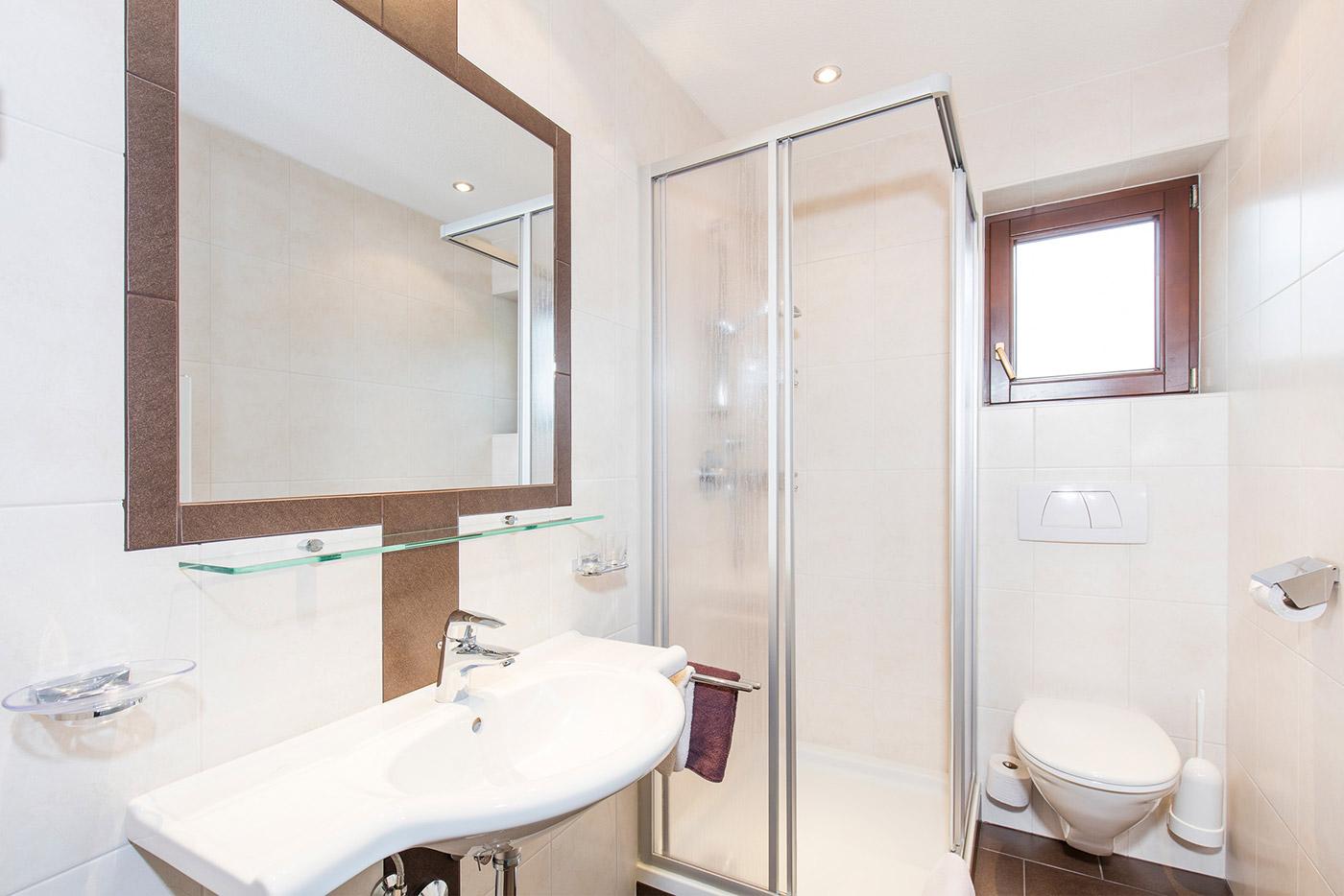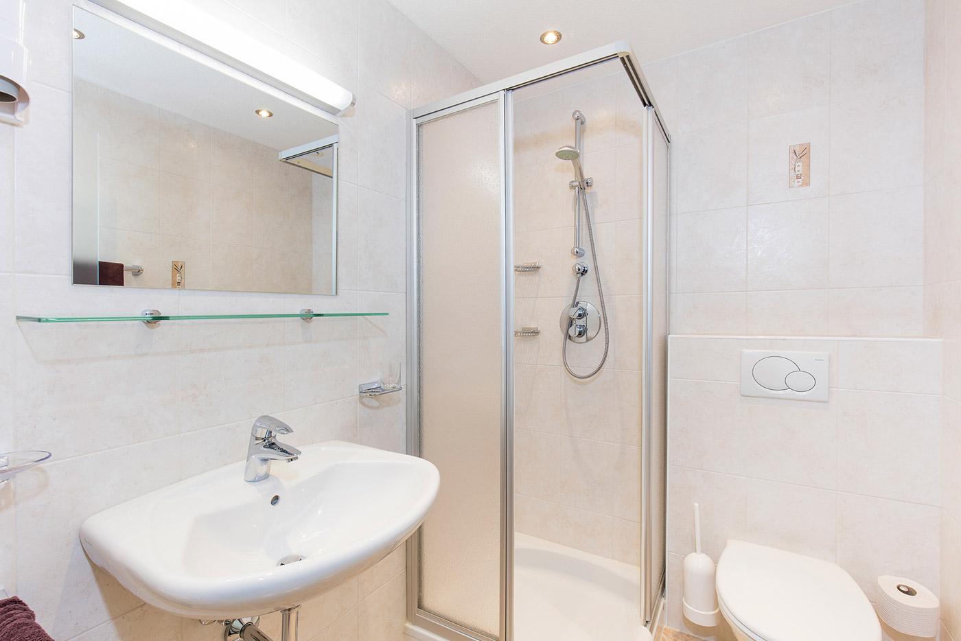 3 Badezimmer mit Dusche, WC und Haartrockner