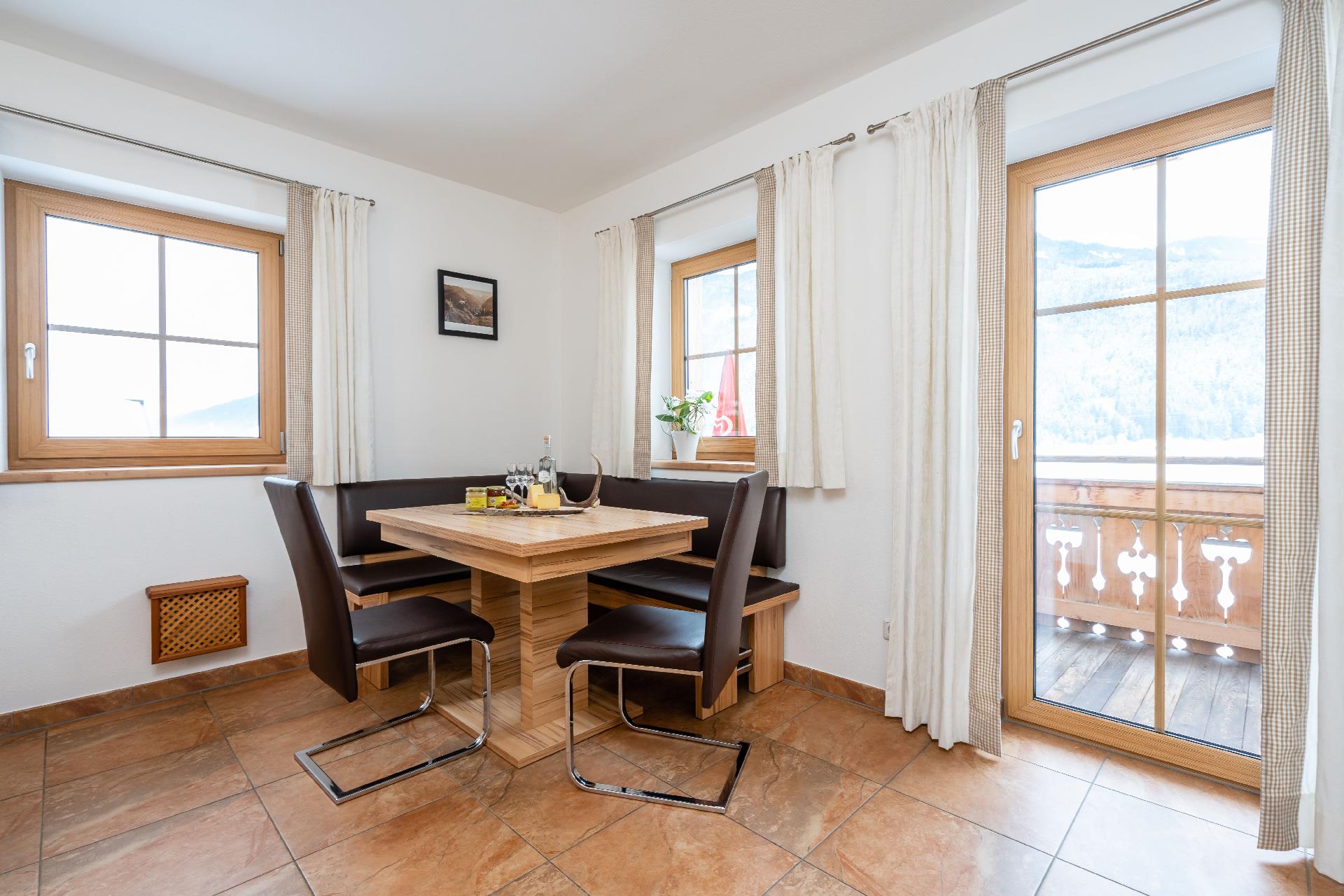 Mit einem Schritt durch die Außentür des Wohnbereichs gelangen Sie kurzerhand auf den Südbalkon. Von hier haben Sie eine fabelhafte Aussicht auf die malerische grüne Natur der Umgebung mit den Bergspitzen im Hintergrund. Selbstverständlich heißt man Sie auch im Garten und auf dem gesamten Gelände des Bio-Hofs herzlich willkommen. Gartenmöbel und ein Grill bieten sich für einen gemeinsamen Grillabend an. Ihre Kinder dürfen im Stall die Kühe füttern, die Kälbchen streicheln oder bei den Ziegen vorbei schauen. Ein Spielplatz befindet sich ebenfalls auf dem Gelände.