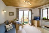 Der Außenbereich der Ferienwohnung ist ebenfalls charmant gestaltet. Vom Wohnraum aus haben Sie Zugang zu einem einladenden Balkon, der mit seinen Gartenmöbeln zum Entspannen in der frischen Luft einlädt. Dieser private Außenbereich ist der ideale Ort, um die ruhige Atmosphäre und die schönen Aussichten zu genießen.