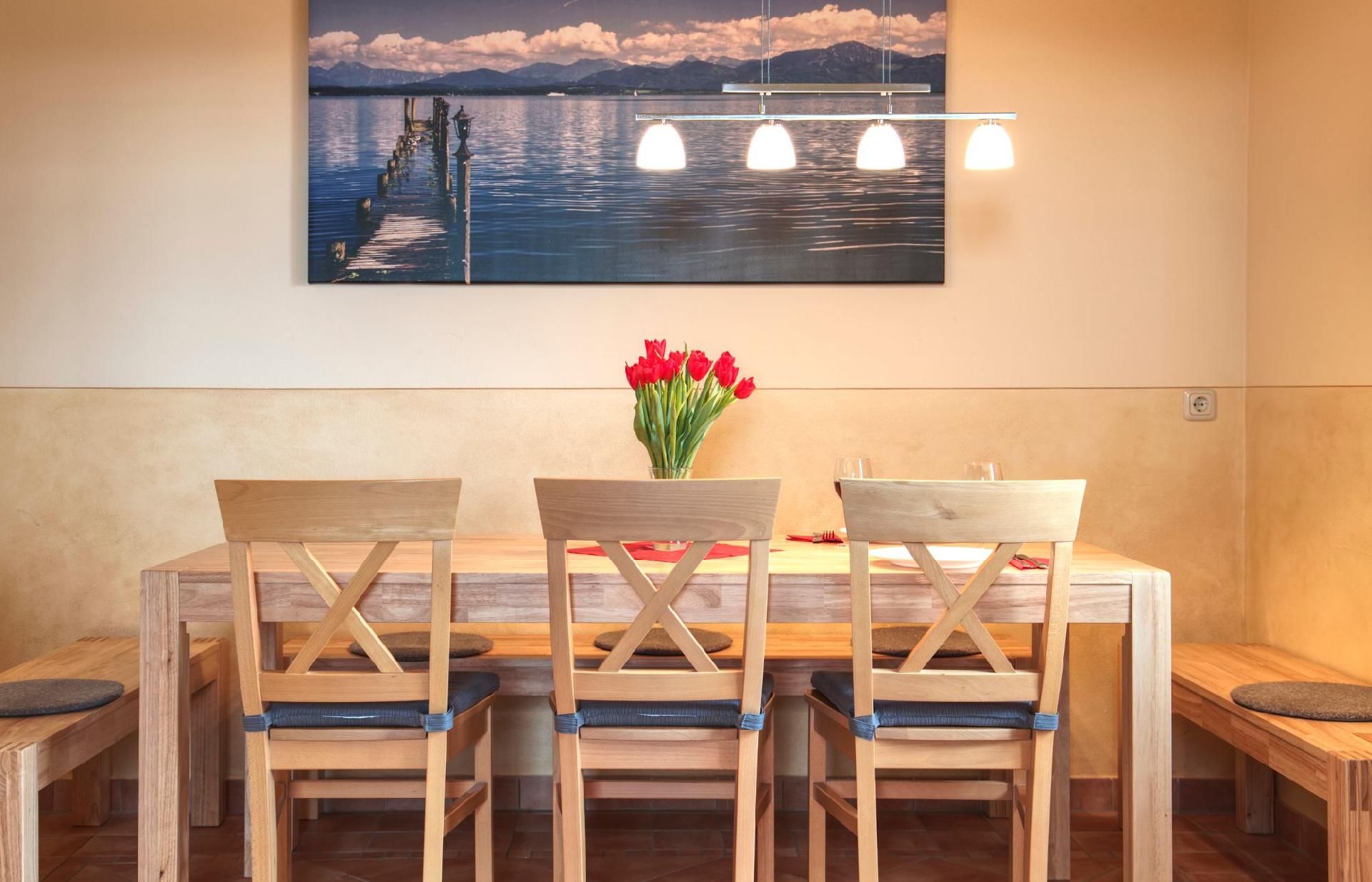 Großzügiges Ferienhaus für 8 Personen in Alleinlage, ca. 6 km vom Ortszentrum Siegsdorf entfernt, am Berg auf 750m Höhe bietet einen einzigartigen Blick auf die Chiemgauer Berge. Das Haus ist somit eine Ruhe-Oase mit Panoramablick über den Chiemgau und darüber hinaus.