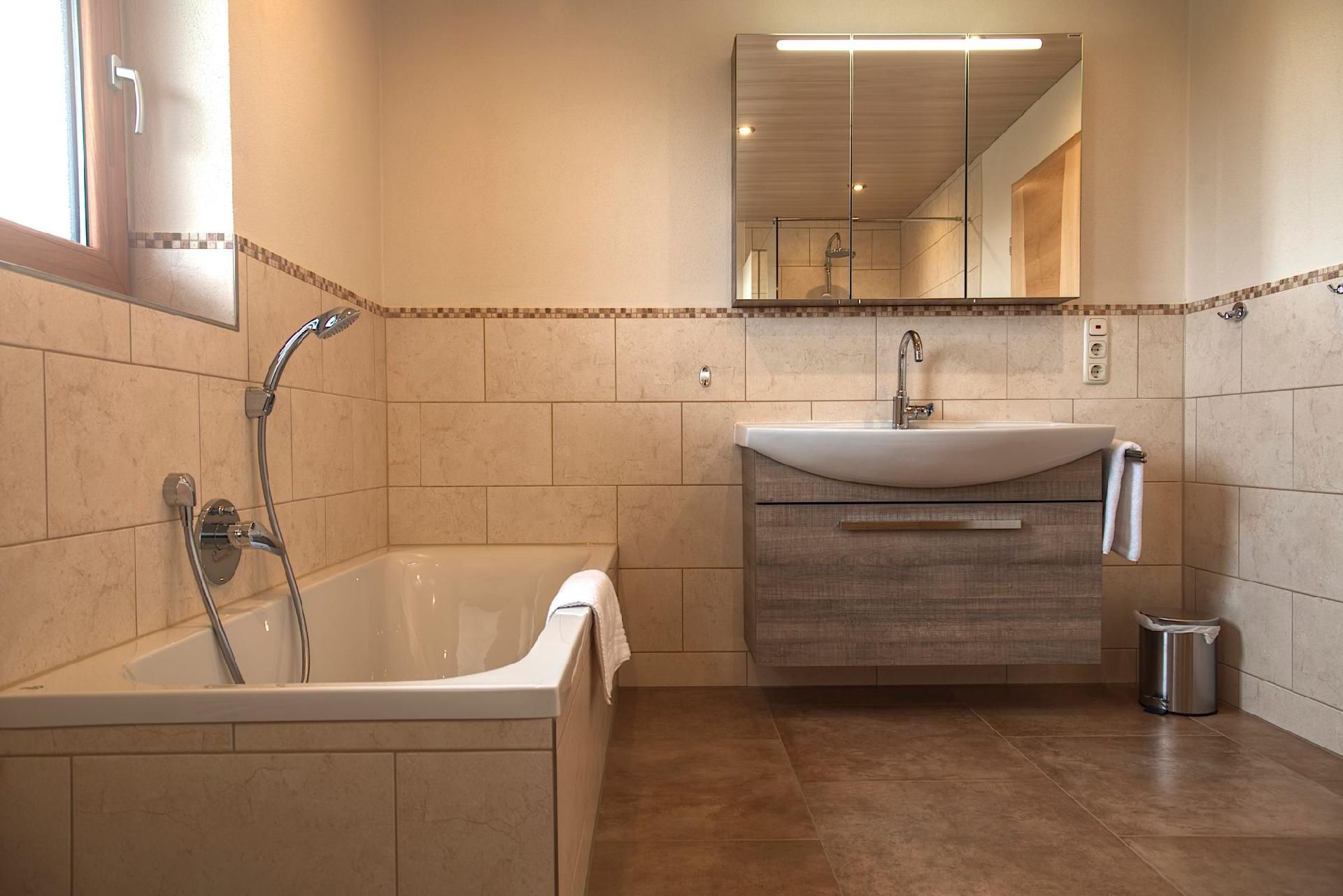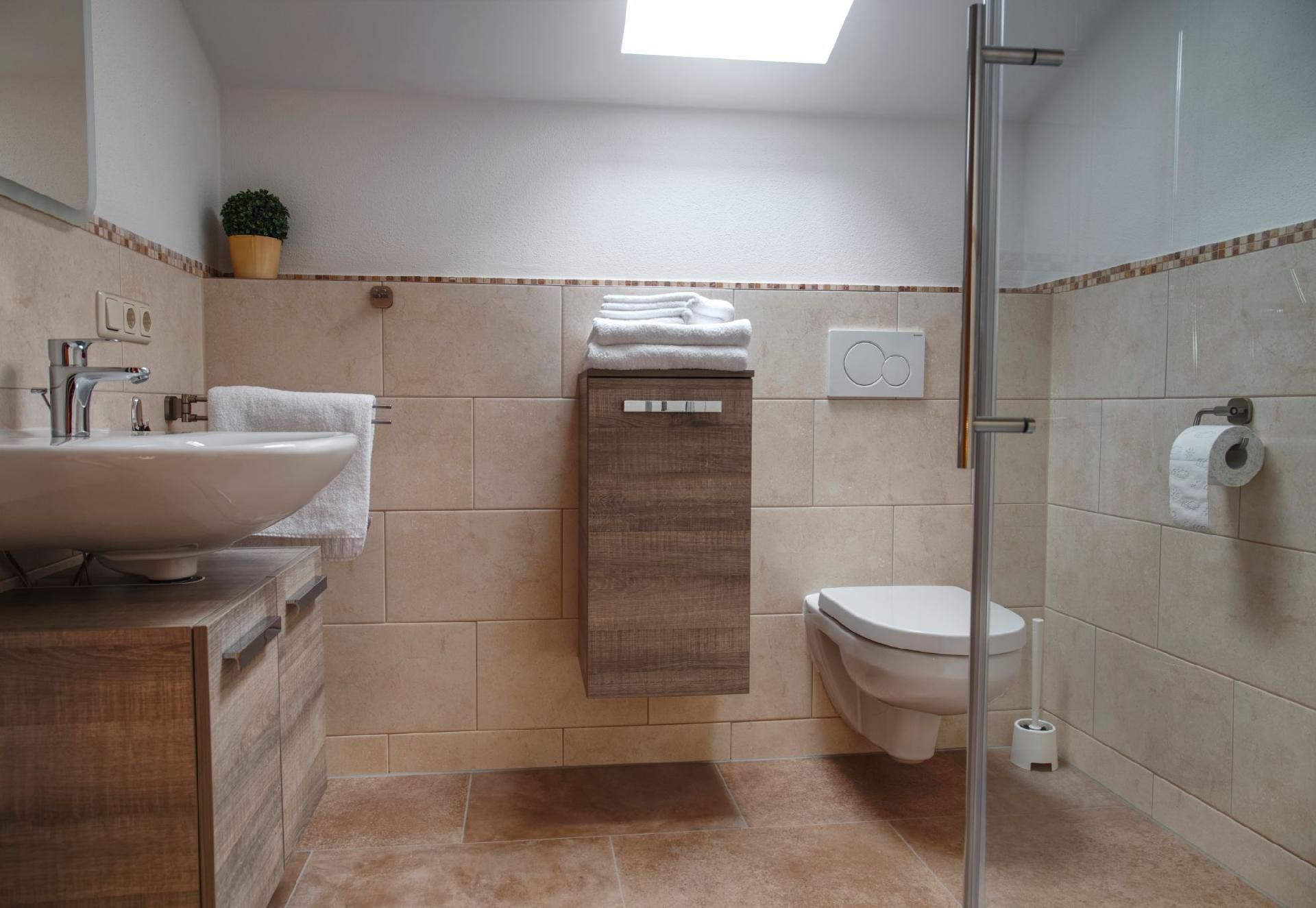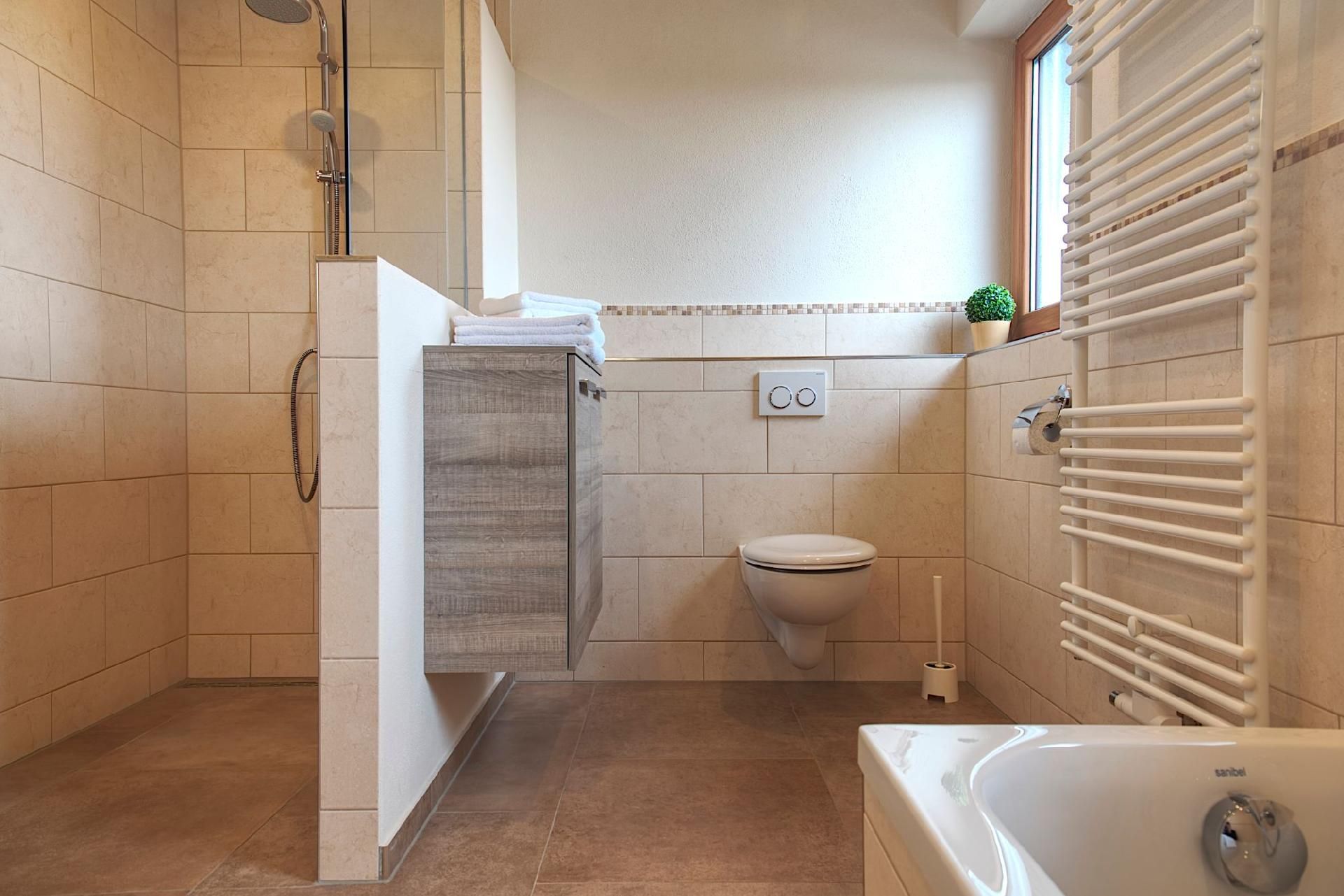 Bad/WC: Badewanne; Dusche; Dusche; Föhn; Föhn; Toilette; Toilette; Waschbecken; Waschbecken