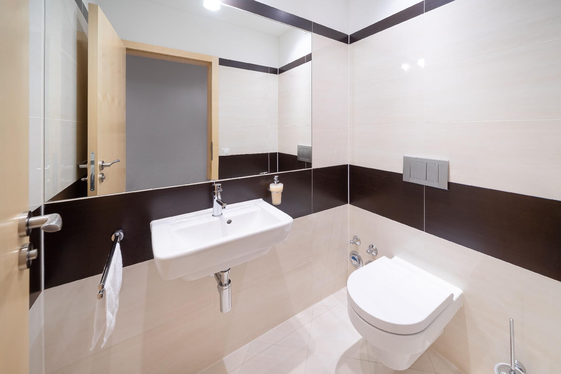 Die Bäder verfügen über Dusche oder Badewanne und größtenteils über Doppelwaschbecken.