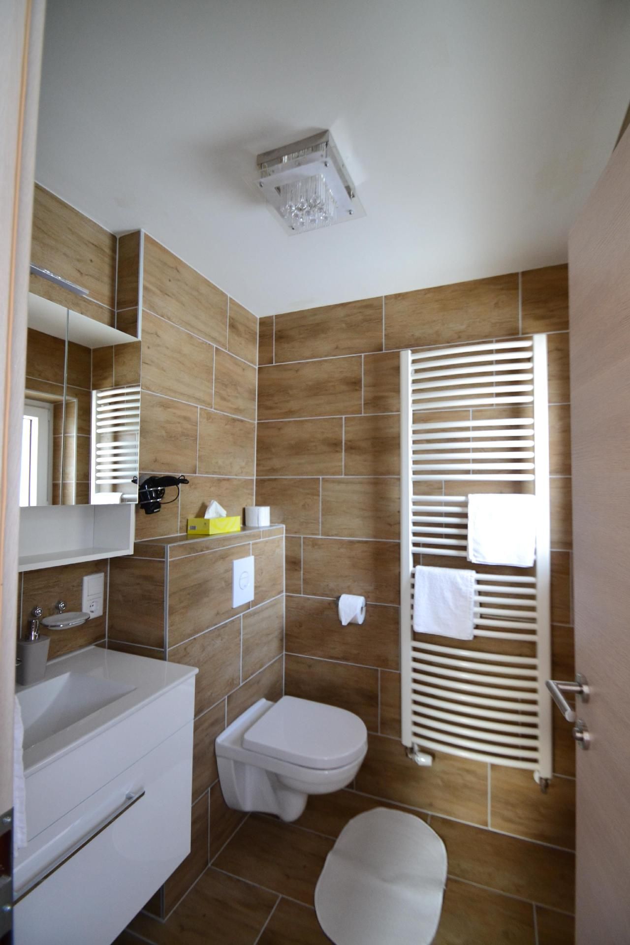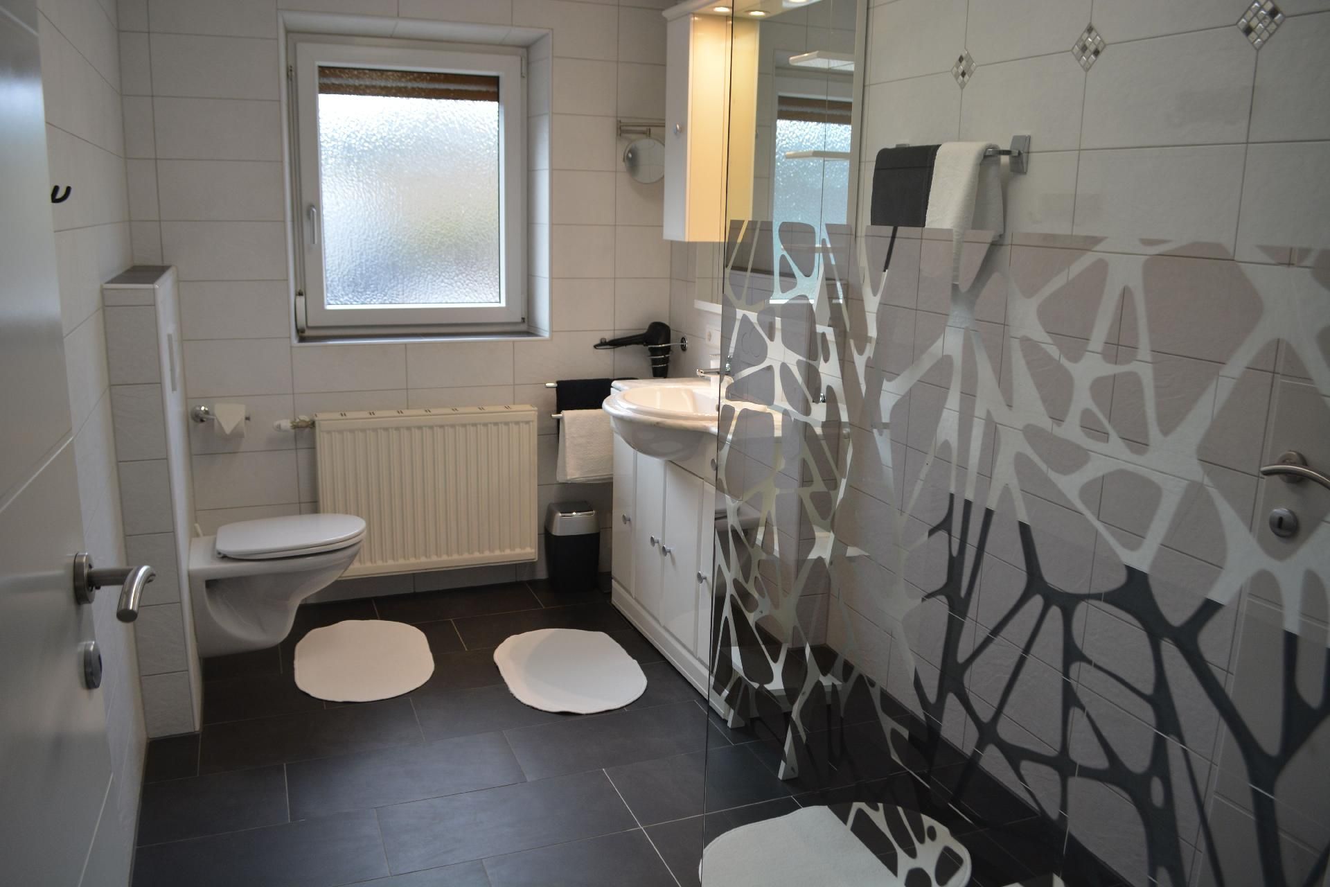 Bad/WC: Dusche; Dusche; Föhn; Toilette; Toilette; Toilette; Waschbecken; Waschbecken; Waschbecken