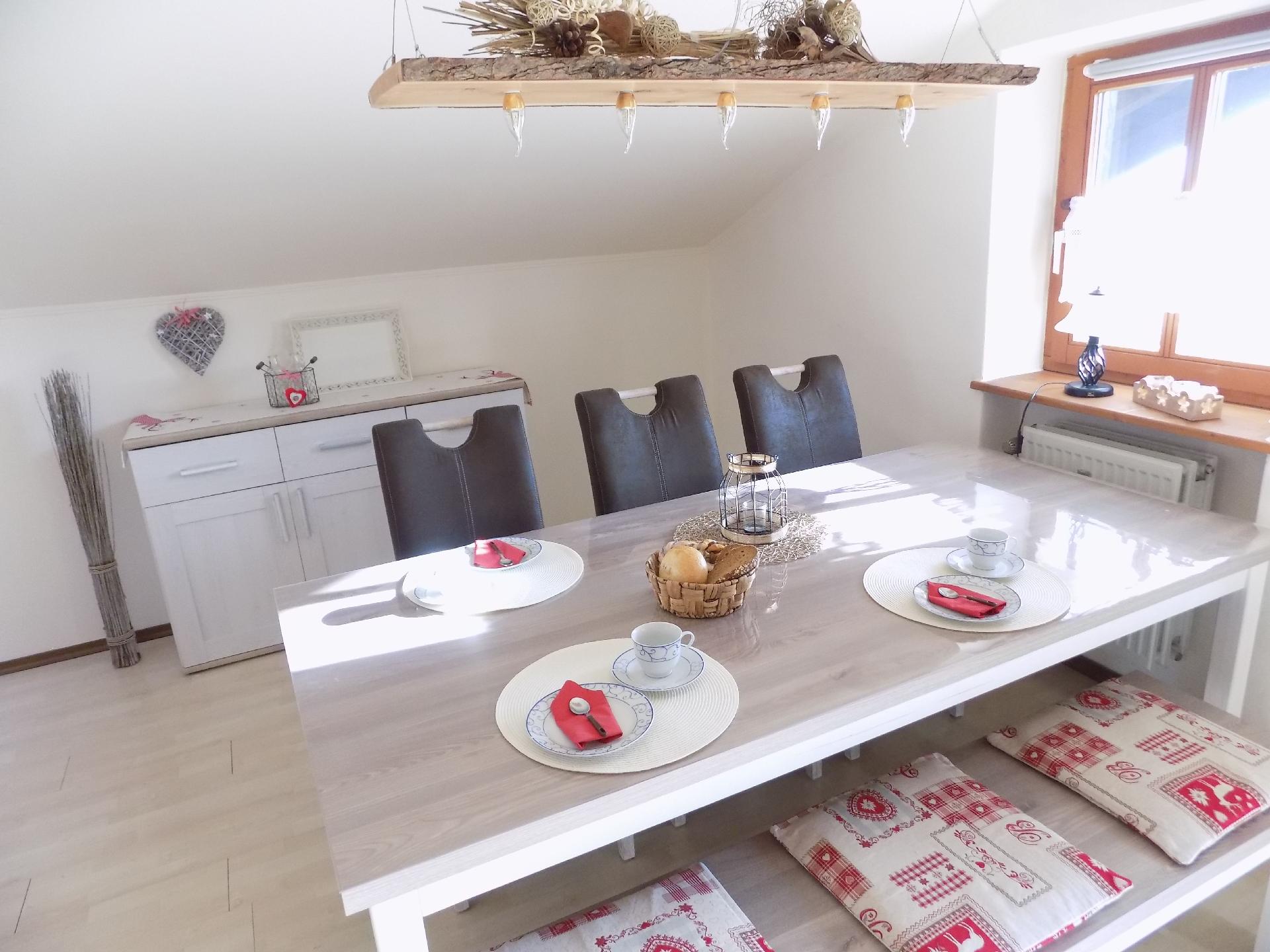 Die geräumige 2 Zimmer-Ferienwohnung, ca. 54 qm im 1. Stock, eigener Eingang, bietet Platz für 4 Personen und ist mit allem ausgestattet was man zu einem entspannten Urlaub braucht. Küchenzeile mit Geschirrspüler, Backofen und Mikrowelle, Toaster, Kaffeemaschine, Eierkocher, Wasserkocher. Gemütliches Schlafzimmer mit 24 cm Komfort Matratzen. Ein großes Wohnzimmer mit Essplatz und 1. Ausziehcouch. Gegenüber dem Essplatz ist unsere TV Ecke mit 2. Ausziehcouch. Bad mit Föhn und Kosmetikspiegel. Wlan kostenfrei. Balkon mit herrlicher Aussicht, an klaren Tagen bis zu den Alpen. Eigener Parkplatz vor der Ferienwohnung. Hallenbad, Außenpool, Sauna, Tischtennis und Spielplatz stehen unseren Gästen kostenlos zur Verfügung. Bei uns ist jeder willkommen, ob groß oder klein. Auch brave Vierbeiner dürfen mit. Ihre Familie Schmidt