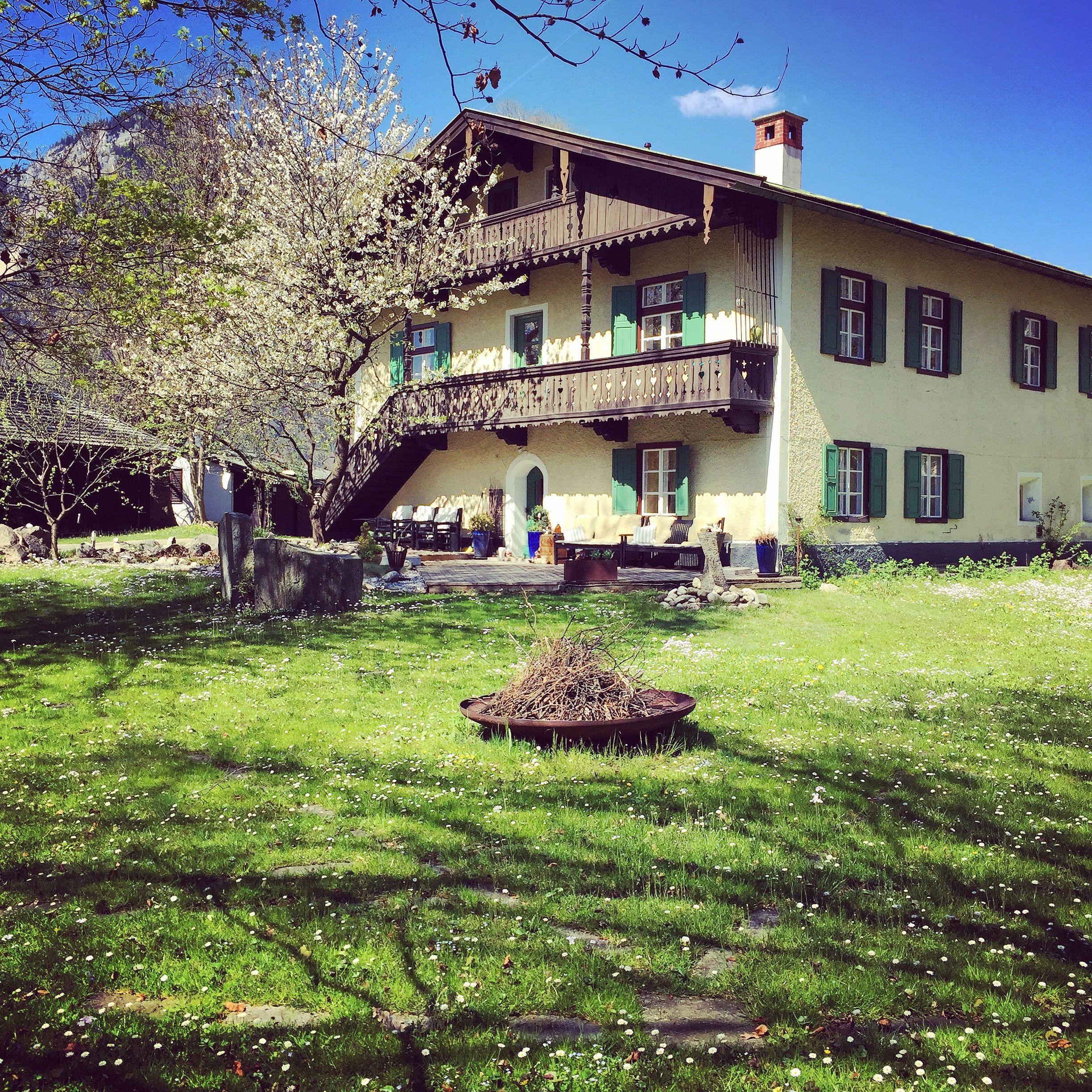 Das 180m² große denkmalgeschütze und achtsam renovierte Bauernhaus - ein Tiroler Mittelganghaus - steht gemeinsam mit dem Claudiaschlössl auf einem riesigen Areal mit uralten Bäumen und Wiesen. * Es gibt 4 Schlafzimmer. Zwei davon mit Himmelbett für 2 Personen. Ein etwas kleineres Zimmer hat ein französisches Bett für eine Person oder ein Pärchen :-)) Das 3. Zimmer hat 2 Einzelbetten, einen großen Tisch und ein Biedermeiersofa. Und im lichtdurchfluteten großen Schlafzimmer im 1.Stock träumt man in einem indischen Himmelbett. Ein Kinderreisebett (ohne Decke und Kissen!) ist auf Anfrage erhältlich. * Das 60 m² große Wohnzimmer ist gemütlich und gleichzeitig mit viel Freiraum eingerichtet: Eine neue große Sofaecke mit 4 Sesseln und 2 Coffee Tables, Separate Sitzecke mit 2 Designer-Ohrensesseln, zahlreiche Meditationskissen und Meditaitonshocker, CD-Player, hochwertige Rega-Lautsprecher, jede Menge Brettspiele und eine ausgewählte Bibliothek. Jedoch gibt es bewusst keinen Fernseher, aber eine stattliche DVD-Sammlung mit Monitor. (Nach Bedarf Seminartische- und Stühle, Flipchart etc.) * Die große Wohn-Küche ist mit Spülmaschine, 2-Platten Kocher, Induktions-Kochplatte, Backofen, Allzweckpfanne mit separatem Stromanschluss, Kühlschrank, Gefrierfach, vollautomatischer Jura-Kaffeemaschine, Eierkocher, Shaker, Toaster, Käsefondue, Waffeleisen, Mixer... und genügend Geschirr voll ausgestattet. Kinderstühlchen auf Anfrage. * 1 Bad mit großer Regen-Dusche und Waschbecken. * 1 Bad mit Dusche, Waschbecken und Urinal * 2 Wc's mit Waschbecken, * Große Holzterrasse mit Tisch, Bänken und Liegestühlen. NEU: Hängematte mit großem Holzgestell * Amerikanischer Barbeque-Grill auf Anfrage.
