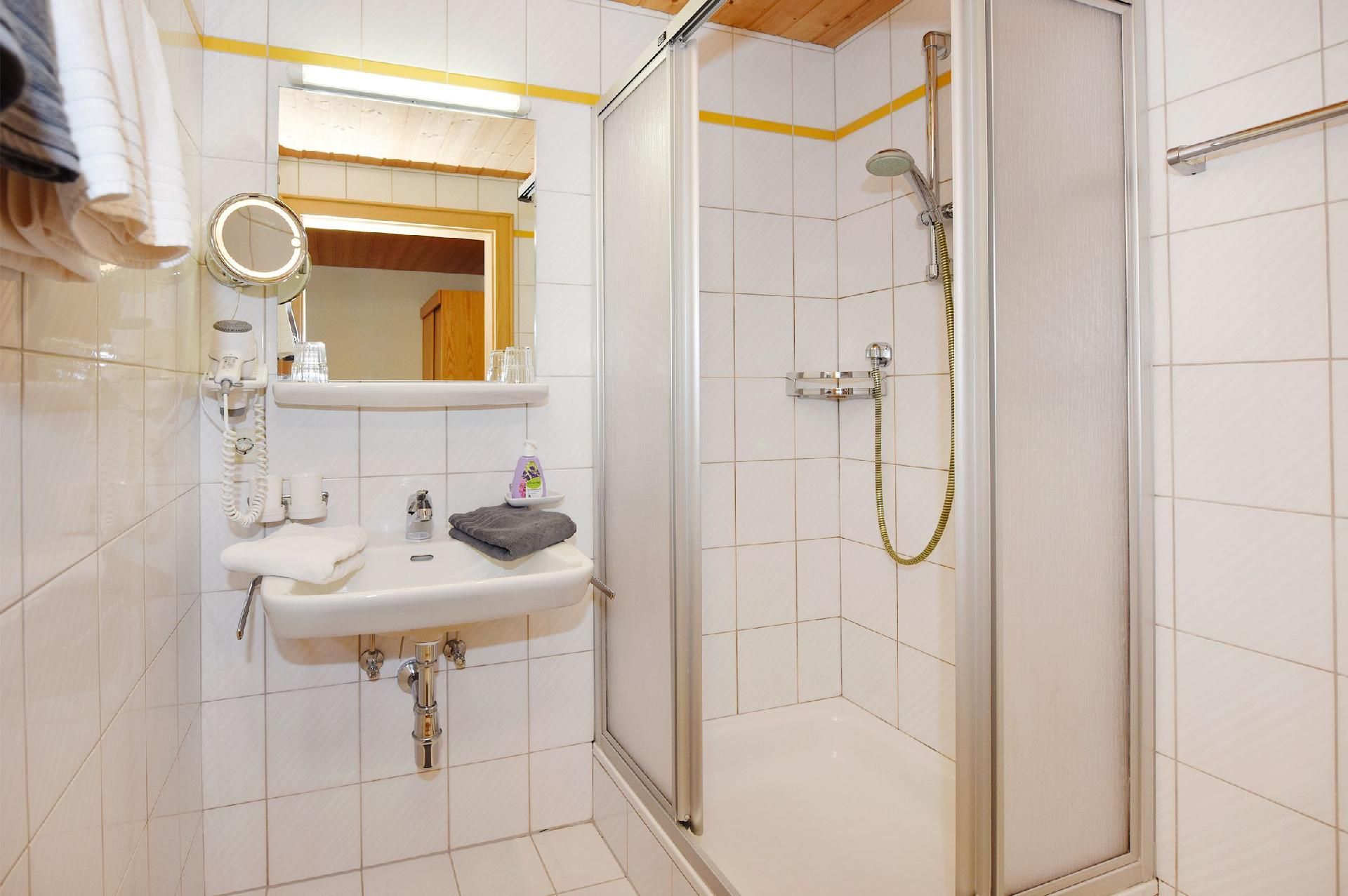 Bad/WC: Dusche; Föhn; Toilette; Waschbecken; Waschbecken