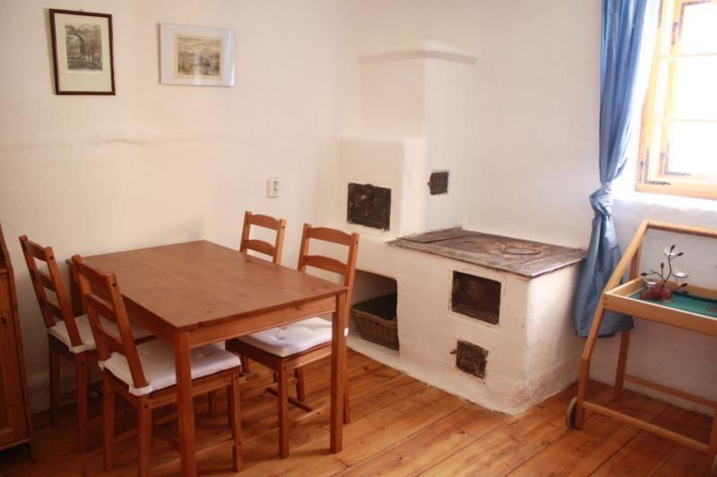 In der 50qm großen Wohnküche kann gekocht und gegessen werden, daneben können Sie vor dem Fernseher lümmeln, den begehbaren Kachelofen erklimmen oder sich in der gemütlichen Sitzecke zum Plausch zusammenfinden.