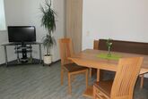 Diese lichtdurchfluteten Ferienwohnung bietet Ihnen zwei Schlafzimmer, ein Wohnzimmer mit Ess- und Kochbereich, ein Badezimmer, sowie ein separates WC. Die gesamte Wohnfläche von 65 m² wird mittels Fußbodenheizung angenehm temperiert. Im ersten Schlafzimmer schlafen Sie in einem Doppelbett einer Maße von 180 cm x 200 cm, das von zwei beidseitigen Nachttischen umgeben ist. Das zweite Schlafzimmer ist gleichermaßen möbliert, bietet Ihnen zusätzlich aber noch ein Einzelbett einer Maße von 90 cm x 200 cm. Kleiderschränke zur Verstauung Ihrer Reisegarderobe sind in beiden Zimmern vorhanden. Herzstück der Wohnung ist der gesellige Wohnbereich mit integrierter Essküche. Nehmen Sie nach einem Tagesausflug Platz zur Entspannung auf der ledernen Couch mit Récamiere. Dabei sorgt der Flachbildfernseher mit Sat.-TV für Unterhaltung am Abend. Die voll ausgestattete Küchenzeile ermöglicht Ihnen eine umfangreiche Selbstversorgung anhand einer Geschirrspülmaschine, eines Kühlschranks mit Gefrierfach, eines Vierzonen-Cerankochfelds mit Backofen, sowie der üblichen Kleinelektrogeräte wie Kaffeemaschine, Wasserkocher, Mikrowelle und Toaster. Der Esstisch lädt zu einer gemeinsamen Mahlzeit auf der bequemen Eckbank mit zwei Stühlen ein. Das Tageslichtbadezimmer ist mit einem unterbauten Waschtisch mit Spiegelschrank, einem Handtuchtrockner, einer Duschkabine und einer Badewanne ausgestattet. Im separaten WC ist ebenfalls ein Handwaschbecken vorhanden.