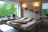 Die innere Einrichtung übertrifft alle Erwartungen: Ein großzügiges Wohnzimmer mit einer integrierten, 1,80 m breiten Doppelbett-Ledergarnitur und einer Lederessecke, wählt bequem bis zu sechs Personen. Ein großes LED-Display, Laptop, Fax, kostenloser Internetzugang (LAN, WLAN), ein Kopierer und Drucker stehen für die Bedürfnisse von Geschäftsreisenden bereit, ergänzt durch aktuelle DVDs, CDs, eine kleine Bibliothek sowie eine Vielzahl an Gesellschafts- und Kinderspielen. Das Schlafzimmer bietet ein übergroßes Bett (2,20 m), hochwertige Möbel und einen zusätzlichen LED-TV. Die Küche begeistert jeden Hobbykoch mit Ausstattung wie Mikrowelle, Spülmaschine, Cerankochfeld, Wasserkocher, und einem Kaffeevollautomaten. Abgerundet wird das Angebot durch ein Badezimmer mit Rain-Dance-Dusche, beleuchtetem Waschtisch und Handtuchwärmer.