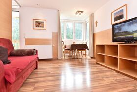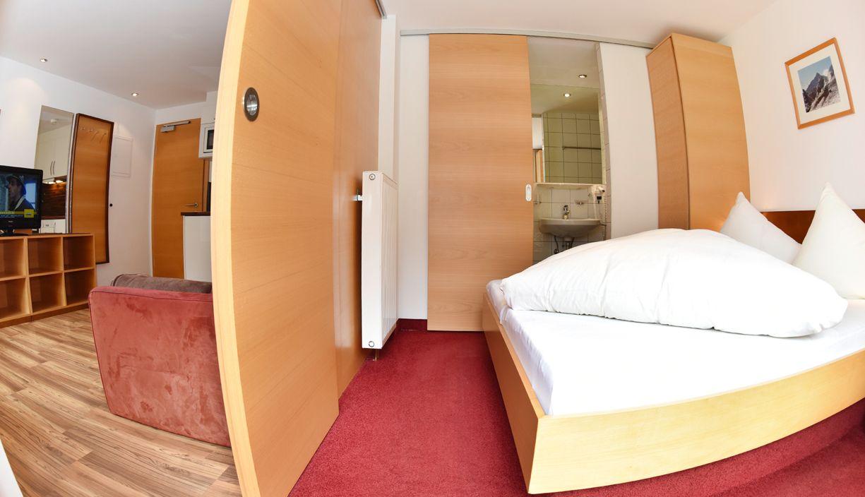 Jedes Appartement verfügt über ein komfortables Doppelbettzimmer ohne Fußende - ideal für große Gäste. Das Zimmer ist mit einer Dusche/WC, einem Fernseher mit Sat-TV, WLAN, Telefon und einem Safe ausgestattet. Die moderne Wohnküche lädt mit ihrer geräumigen Sitzecke und einer ausziehbaren Couch zum Verweilen ein. Die Küche selbst überzeugt durch eine umfangreiche Ausstattung: Geschirrspülmaschine, E-Herd mit Cerankochfeld und Backrohr, Kühlschrank, Mikrowelle, Wasser- und Eierkocher, verschiedene Kaffeemaschinen - von der Espressokanne bis zur Kapselmaschine, Toaster und ausreichend Geschirr.