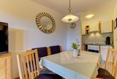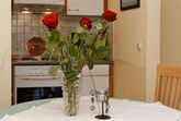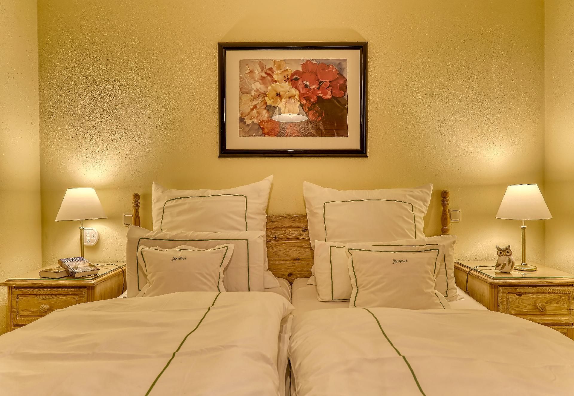 1. StockZentralheizung1 Wohneinheit dieser ArtDoppelbett 1,80x2.00m, Kaltschaummatratze Härtegrad 4, Federbetten, 3 Kopfkissen pro Person (80x80, 80x40, 40x40), Kleiderschrank, Kommode. Schlafzimmer ist NordseiteSchlafsofa Wohnzimmer mit Lattenrost und Matraze 160x200Esstisch für 4 PersonenWohnbereich mit Sat-TV, Stereo und möbiliertem SüdbalkonKüche mit Geschirrspüler, Kühlschrank mit Gefriefach, 4-Plattenherd, Backofen, Abzugshaube, Spüle, Töpfe, Pfannen, FilterkaffeemaschineBad: Duschwanne mit Duschvorhang, Waschbecken, WCGarderobe