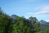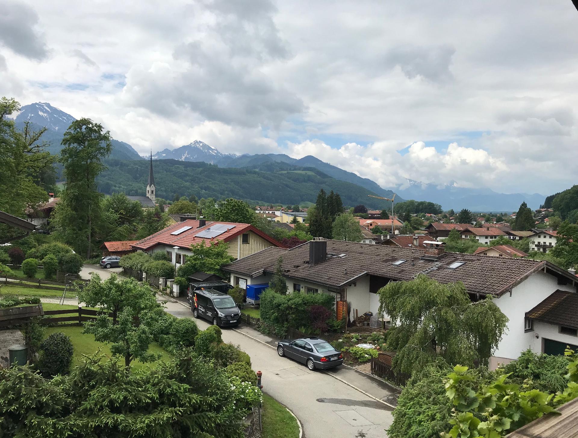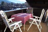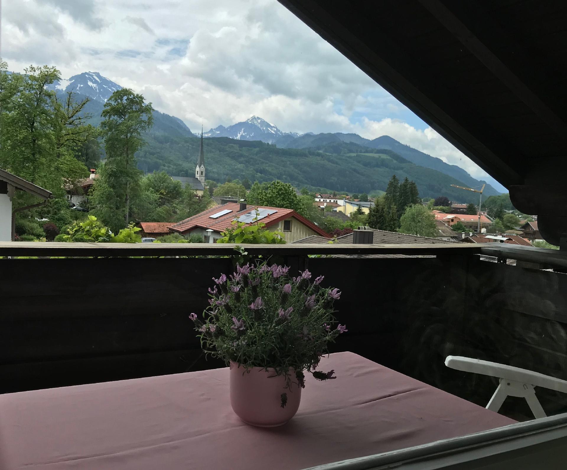 Ein Tisch mit zwei Sitz-/Liegestühlen lädt auf dem überdachten Balkon zum Entspannen ein. Vom Wohn- und Essbereich sowie vom Balkon können Sie einen herrlichen Panoramablick über die Berge der Umgebung sowie auf den Ort Bergen genießen. Ein Parkplatz befindet sich am Haus.