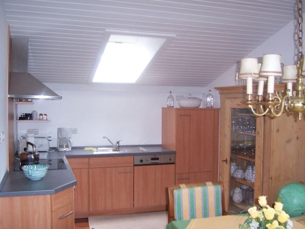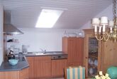 Ein Zwei- und ein Dreisitzer mit Stereoanlage und Kabel-Fernseher mit Fernbedienung laden im Wohnbereich zum Verweilen ein. Erleben Sie von hieraus durch das große Panoramafenster einen herrlichen Panoramablick. Das Fenster kann bei Bedarf mit Lamellen verdunkelt werden. Weiterhin finden Sie hier die moderne, offene Einbauküche mit allen wichtigen Küchenutensilien zur Selbstverpflegung vor. Neben einer Geschirrspülmaschine stehen außerdem noch ein Backofen, Cerankochfeld, Kaffeemaschine, Toaster, Dunstabzug ins Freie und ein Kühlschrank mit Gefrierfach für Sie bereit. Im angrenzenden hellen Essbereich lädt ein Esstisch mit drei Stühlen und einem Zweisitzer nach dem Zubereiten und Kochen zum gemeinsamen Speisen ein.
