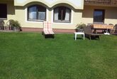 Zwei Apartements haben einen direkten Ausgang in den Garten, dort befinden sich für die Gäste Liegestühle, Gartenmöbel, Sonnenschirm und ein Gartengrill. Für die kleinen Gäste gibt es einen Sandkasten, Kinderschaukel, Tischtennistisch und viel Platz zum spielen.