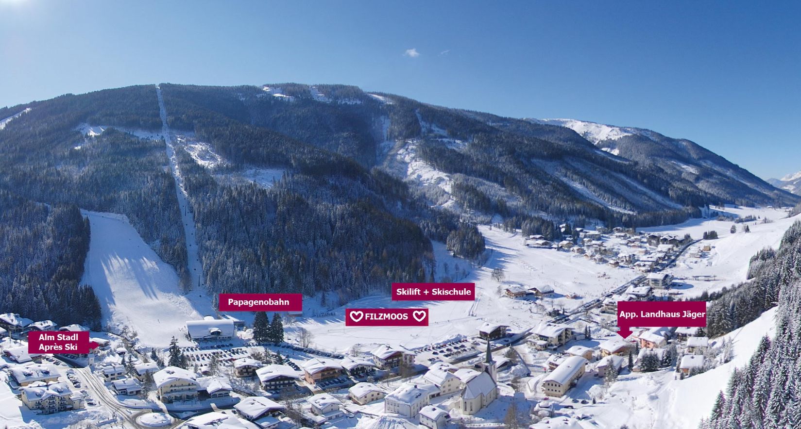 Das Landhaus Jäger liegt sehr zentral in Filzmoos. Geschäfte, Schischulen, Schilifte sind in unmittelbarer Nähe. Im Sommer Ausgangspunkt für viele schöne Wanderungen und Bergtouren.