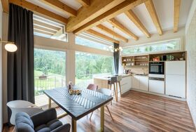 Das stilvoll und großzügig eingerichtete Appartement verfügt über zwei getrennte Schlafzimmer (ein Schlafzimmer mit Doppelbett 180 x 200cm, und ein Schlafzimmer mit zwei Einzelbetten 90 x 200cm (auch möglich als Doppelbett vorzubereiten)), und einen großen, gemütlichen Wohnraum. Das großzügig designte Badezimmer mit exklusiver Erlebnis-Regendusche macht Ihren Urlaub perfekt. Eine Küche, ein separates WC, Fön und Flat-TV komplettieren das Angebot Ihres Wohlfühlappartements. Der Wellnessbereich im Untergeschoss bietet Infrarotkabine, Dusche, einen großzügigen Ruheraum mit Liegen sowie einen Bioethanolofen der im Winter eine traumhaft schöne Atmosphäre schafft. Weiters steht Ihnen im Untergeschoss ein Abstellraum für Ski, Fahrräder etc. zur Verfügung wo sich auch die Waschmaschine, Wäschetrockner und Bügeleisen befinden die sie kostenlos nutzen können.