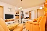 Das Haus ist komplett neu mit hochwertigen und modernen Möbeln liebevoll eingerichtet. Jede Ferienwohnung besitzt einen Abstellraum/Wirtschaftsraum. Die Ferienwohnungen sind barrierefrei eingerichtet. Die Küchen sind komplett ausgestattet, so sind u. a. Spülmaschine, Elektroherd, Mikrowelle, Backofen, Kühlschrank mit Gefrierfach und Dunstabzug vorhanden. Alle Wohnungen haben einen Kaminofen mit Specksteinverkleidung und Glasscheibe für eine romantische Atmosphäre. Das Holz hierfür steht Ihnen kostenlos zur Verfügung. Das Bad hat einen großen Waschtisch, WC und Dusche. Handtücher und Bademäntel werden kostenlos gestellt. Alle Wohnungen sind mit einer Zentralheizung ausgestattet. Alle Betten sind Doppelbetten mit jeweils zwei getrennten Matratzen. Diese haben die Maße 90 cm x 200 cm.