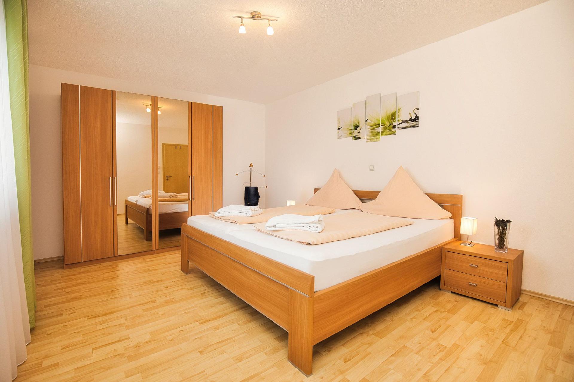 Die Wohnung mit rund 100 qm bietet zwei Schlafzimmer mit Doppelbett, ein Kinderreisebett ist hinzustellbar. Die Wohnung ist für maximal vier Personen buchbar.