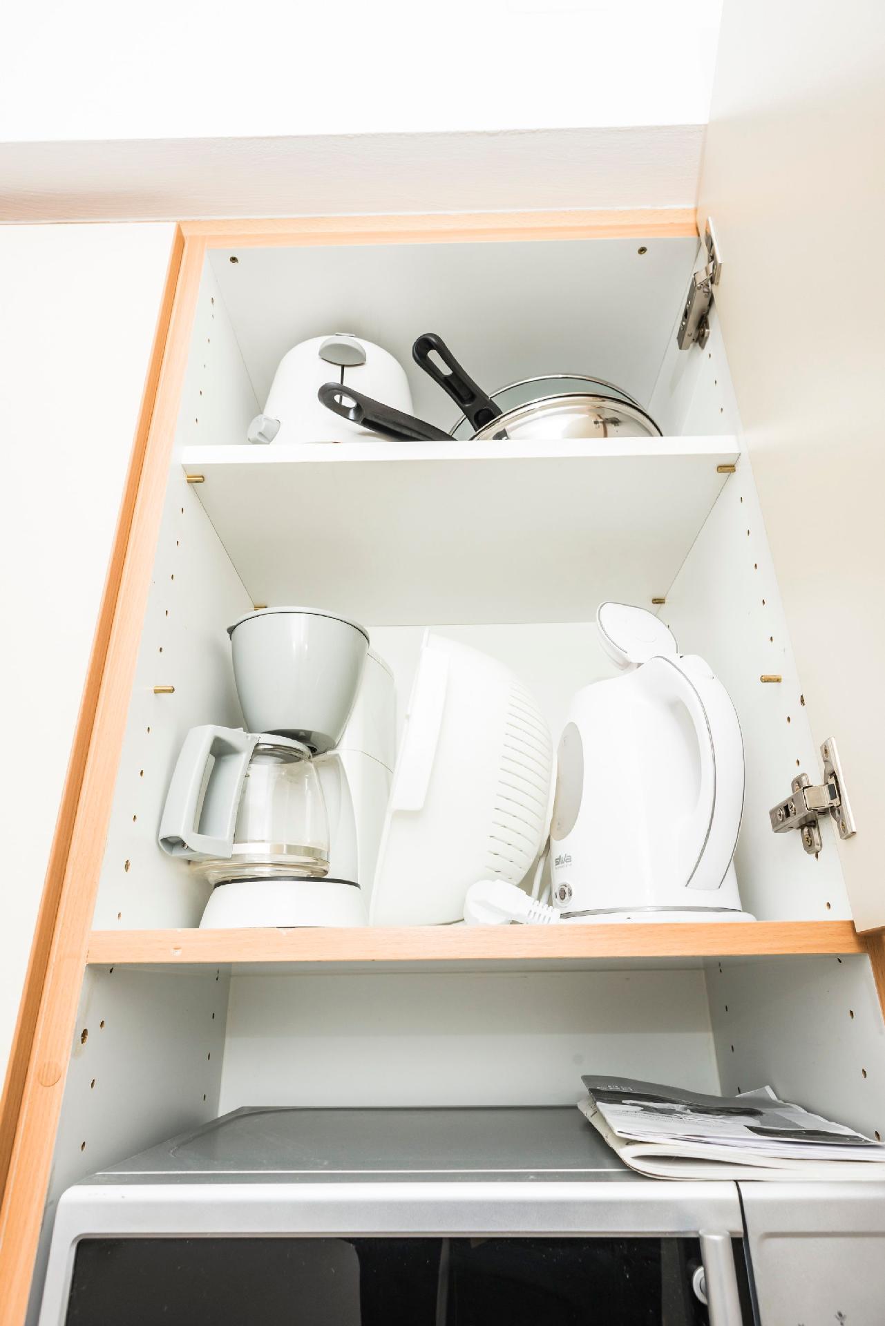 Kochen: Gefrierfach; Herd; Kaffeemaschine; Kaffeemaschine; Kaffekapselmaschine; Kühlschrank; Mikrowelle; Spülmaschine; Toaster; Wasserkocher