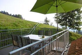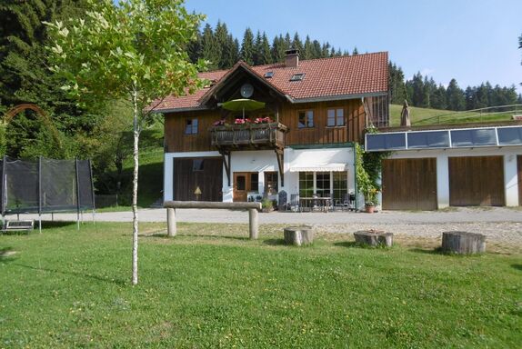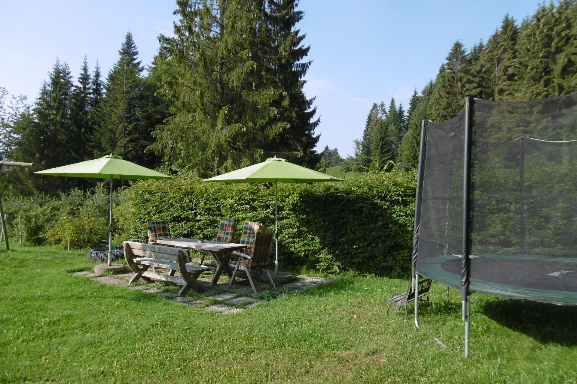Zur Ferienwohnung mit eigenem Eingang, einem Wohn- und zwei Schlafzimmern gehört eine Sonnenterrasse auf der Sie beste Aussicht auf das Bergpanorama haben. Für Kinder steht ein Spielplatz und ausreichend Platz zum Toben zur Verfügung.