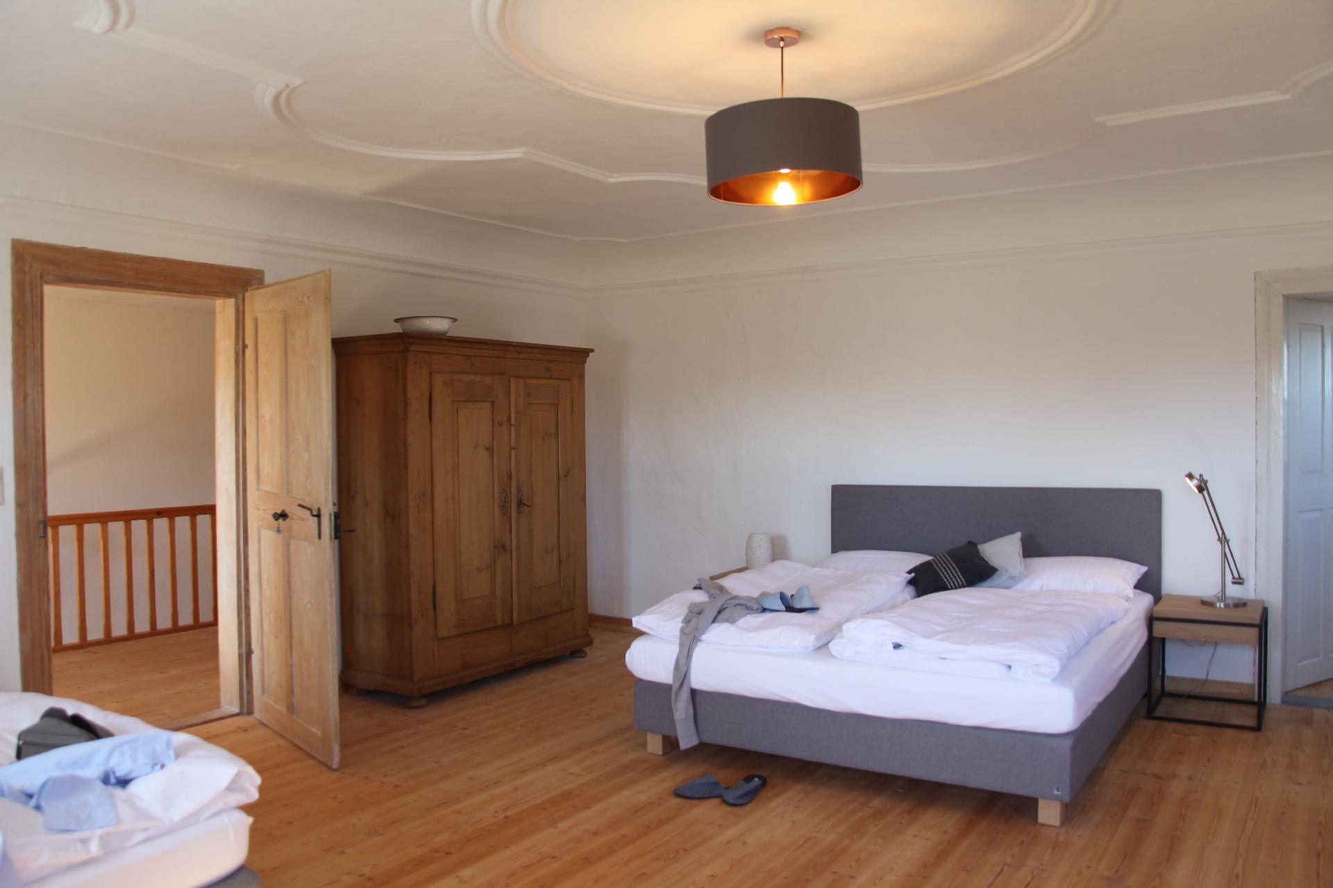 Der 300m² große Pfarrhof wurde in seinem ursprünglichen Zustand belassen und besticht durch ein rustikales Ambiente mit modernen Annehmlichkeiten. An das Wohnhaus schließt sich der alte Kuhstall an, in dem Ihr Holz für den gemütlichen Kachelofen in der großen Stube (Platz für 20 Personen) gelagert wird. In der Stube auf der gemütlichen Ofenbank können Sie entspannen, sich nach dem Wandern oder Skifahren wärmen oder einfach nur gemütlich plaudern. Nebenan befindet sich die moderne Küche mit Kochinsel, die mit allen wichtigen Küchenutensilien komplett ausgestattet ist. Neben einem großen Kühlschrank mit Gefrierfach stehen weiterhin noch ein Toaster, Wasserkocher, Spülmaschine, Kaffeemaschine u.v.m. für Sie bereit. Der Pfarrhof verfügt weiterhin über vier Schlafzimmer, zwei großzügige Flure oben und unten (ideal zum Toben für Kinder), drei Bäder und eine Gästetoilette. Eines der vier Schlafzimmer ist ein neu gebautes wunderschönes Kojenlager mit komfortablen 1,80 m Betten.