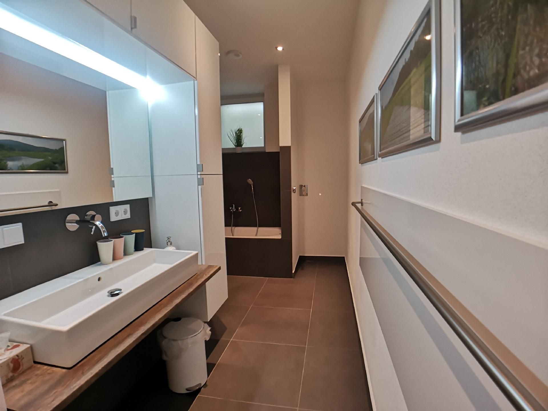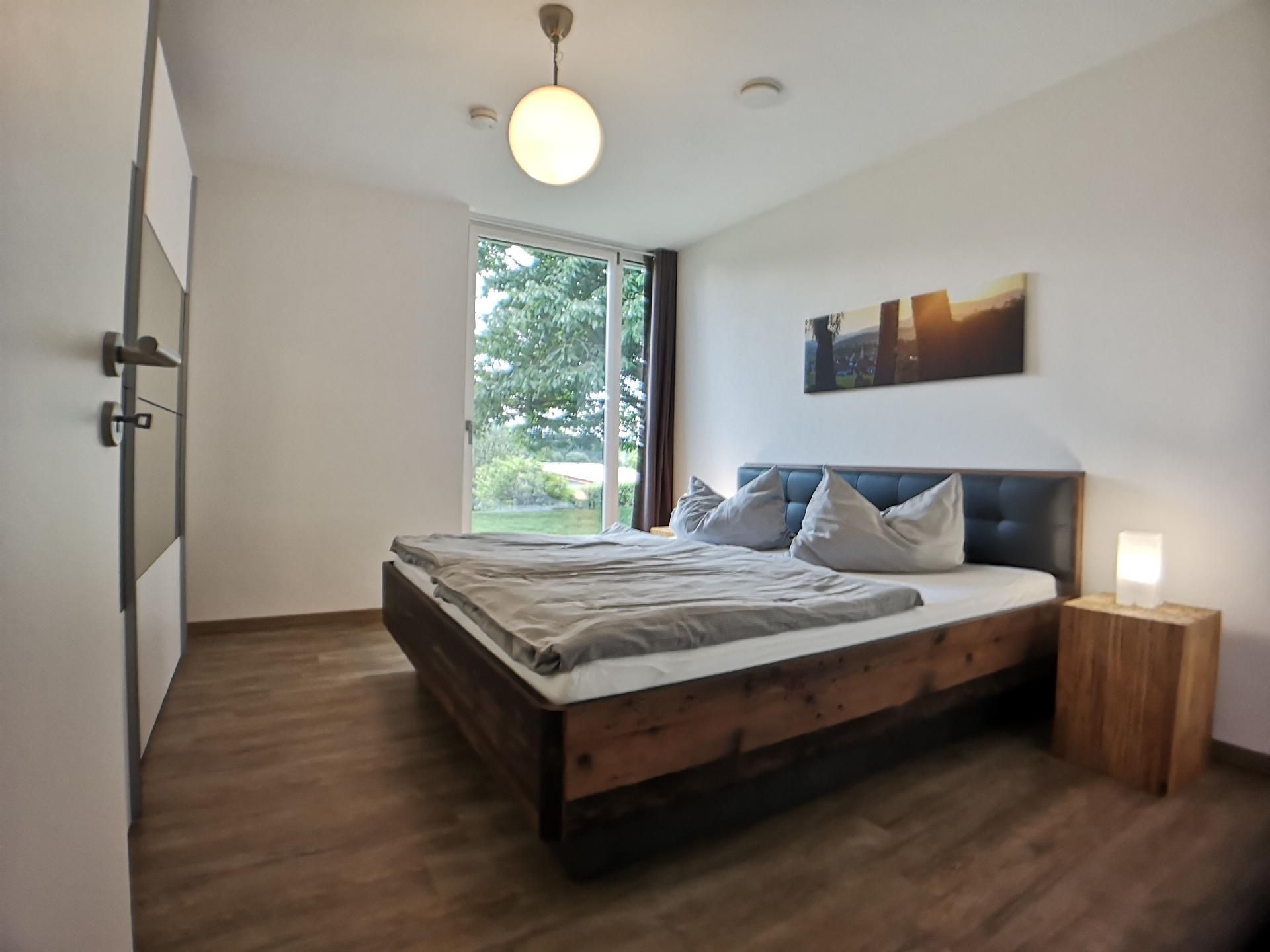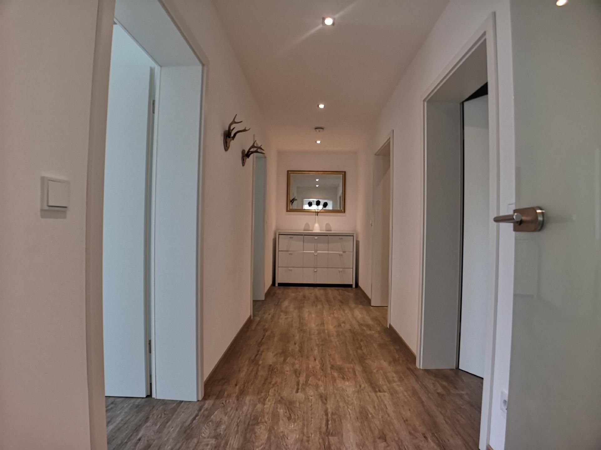 ****Ferienwohnung 93 qm im Erdgeschoss, barrierefrei 1 Schlafzimmer mit 1 Doppelbett 1 Kinderzimmer mit 1 Bett 90 x 200 cm (Zusatzbett 90 x 200 cm oder 1 Baby-Reisebett 60 x 120 cm möglich) 1 Bad mit begehbarer Dusche und Badewanne und WC, Waschtrockner im Bad, 1 Abstellraum mit Safe, 1 Wohn-/Ess-/Kochraum mit Sat-TV, Stereoanlage, Kaminofen komplett ausgestattete Küche mit Geschirrspüler, Mikrowelle, Backofen, Kühlschrank mit Gefrierfach, Kaffeeautomat (Pads), Fußbodenheizung in der kompletten Wohnung, zentrale Lüftungsanlage im Gebäude, Raffstore/Sonnenschutz in Wohn- und Schlafräumen