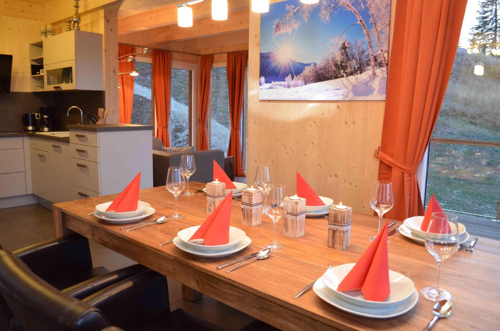 Erholung oder sportliche Aktivität inmitten wildromantischer Natur und dabei nicht auf Komfort verzichten? Dann sind Sie hier genau richtig. Unser Ferienhaus Klipp-Chalet liegt in Hanglange auf 1600 Metern Höhe und bietet eine großartigen Panoramablick. Das Chalet bietet auf 150 m² Raum für 10 Personen und eine Ausstattung der Extraklasse. Es verfügt über einen großzügigen Wohn-/Essbereich mit einem Gaskamin, einen gemütlichen Wintergarten, vier Schlafzimmer mit insgesamt 10 Schlafmöglichkeiten und zwei exklusive Wellnessbereiche.