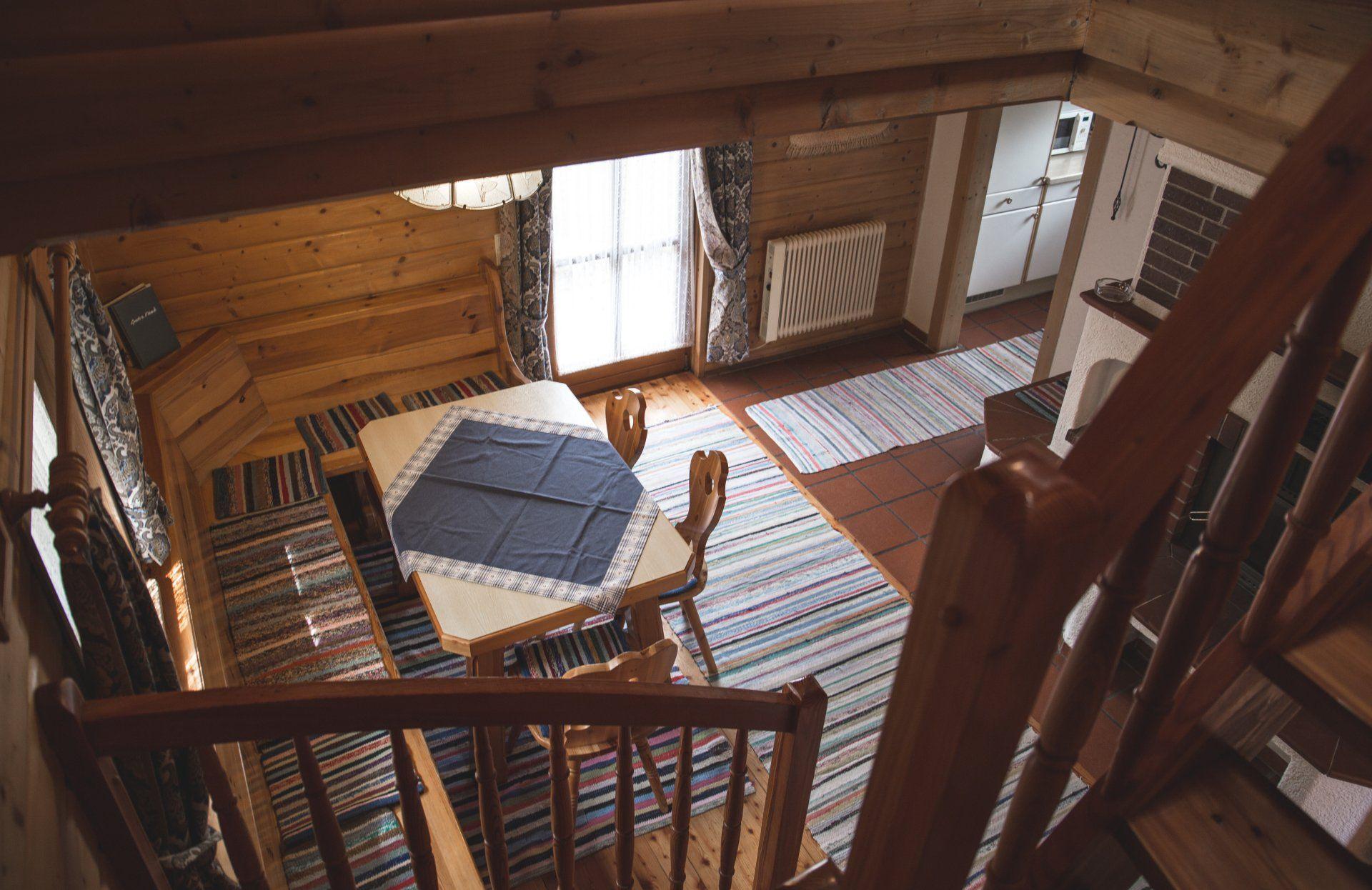 * einem WOHNRAUM, der zu einem gemütlichen Zusammensitzen einlädt (eine große Sitzecke mit Holztisch, TV mit SAT – Anlage und ein selbsterrichteter Kaminofen),* einem ZWEI – BETT – ZIMMER (Stockbett) im Parterre (auch das Bereitstellen eines Gitterbettes für die kleinsten Gäste stellt kein Problem dar).* einem BADEZIMMER mit Dusche und WC,* einem weiteren WC im 1. Stock,* einer SAUNA für 6 Personen,* zwei DOPPELZIMMERN