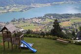 Der großzügige Garten ist mit Gartenmöbeln und Spielgeräten ausgestattet und steht Ihnen zur gemeinsamen Nutzung mit einem weiteren Appartement zur Verfügung. Hier können Sie entspannen, sich erholen und ein Buch lesen oder gemütliche Abende mit Freunden oder mit der Familie verbringen. Von dem Wohnraum gelangen Sie auf die 100m² große Terrasse, die in Südrichtung gelegen ist. Diese ist mit einem Tisch und Stühlen sowie einem Grill ausgestattet und bietet Ihnen einen atemberaubenden Blick auf die Berge und den Ossiachersee, den Sie tagsüber mit einem Tee oder abends bei einem gemütlichen Abendessen genießen können. Ob im Frühling, Sommer, Herbst oder Winter – zu jeder Jahreszeit hat diese Aussicht in die Natur einen ganz besonderen Charme. Es stehen Ihnen zwei PKW Stellplätze zur Verfügung.
