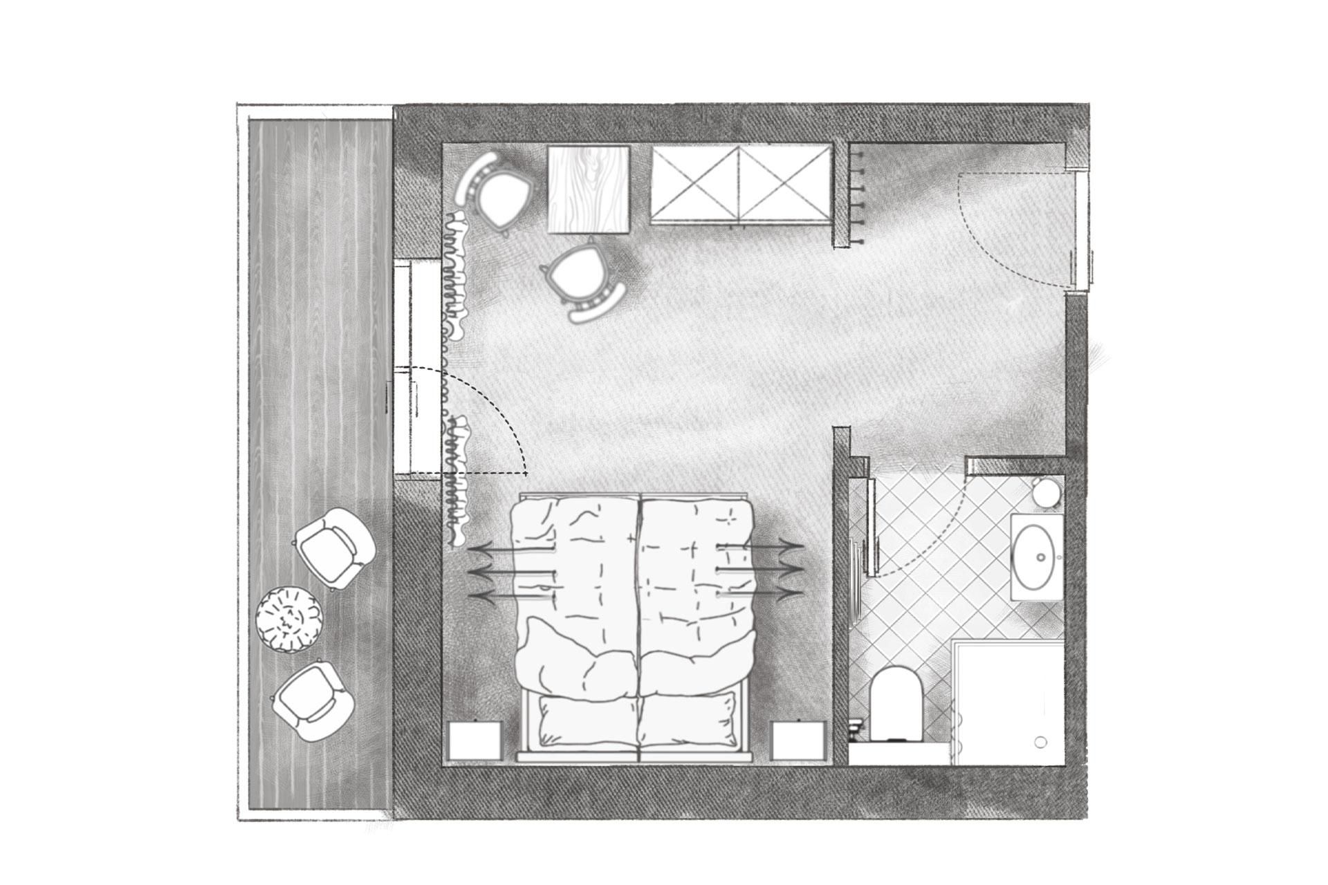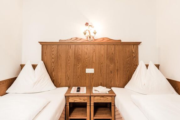 Doppelzimmer Murmeltier im Souterrain mit ca. 17 m²: 1 Doppelbett (Boxspringbett mit 1,8 x 2 m), Flat TV, Telefon, Safe, Badezimmer mit Dusche/WC und Haarfön. Mit Balkon. Getrennte Betten auf Anfrage möglich.