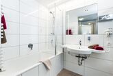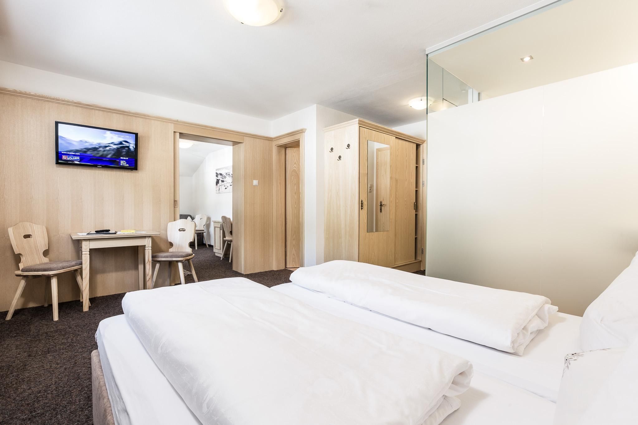Doppelzimmer ADLER mit ca. 36 m²: 1 Doppelbett (Boxspringbett 1,8 x 2 m), Wohnecke mit 1 Sofabett für bis zu 2 weitere Personen, Balkon, Flat TV, Radio, Telefon, Safe, Badezimmer mit Badewanne und integrierter Dusche, Haarfön und separatem WC. Getrennte Betten auf Anfrage möglich.