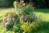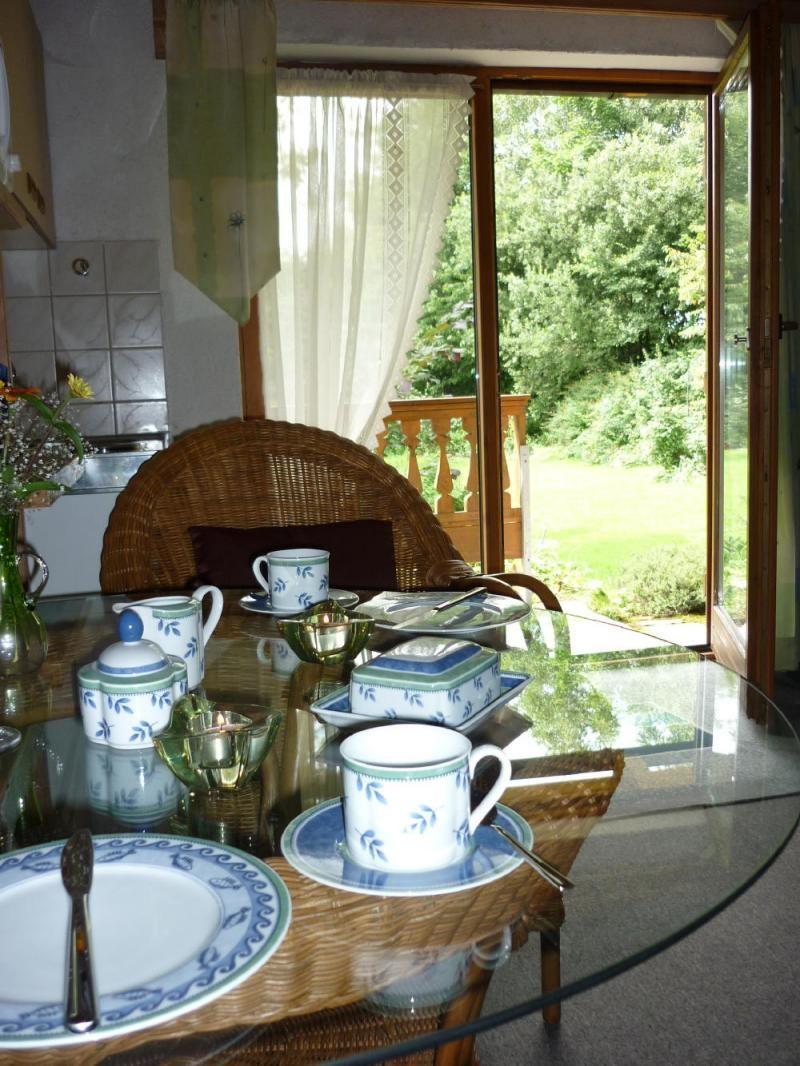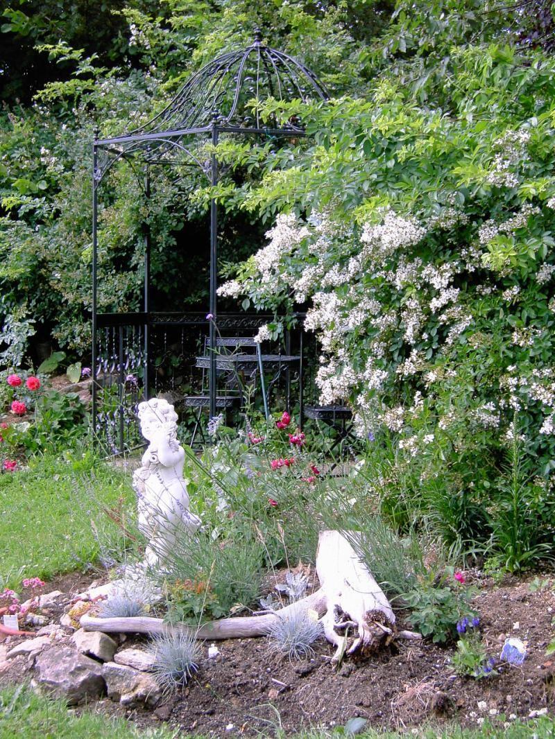 Im Außenbereich unseres Anwesens lädt eine große Terrasse mit Gartenmöbeln und Sonnenschirm zum Verweilen ein, ergänzt durch einen romantischen Garten, der sich nahtlos in die herrliche Landschaft einfügt. Unser 4000 qm großer, preisgekrönter Naturgarten ist der ideale Ort, um unter schattigen Bäumen oder in der Rosenlaube den Tag entspannt ausklingen zu lassen. Die Liebe zum Detail und unser Engagement für einen biologischen und umweltschonenden Garten wird auch Sie begeistern.