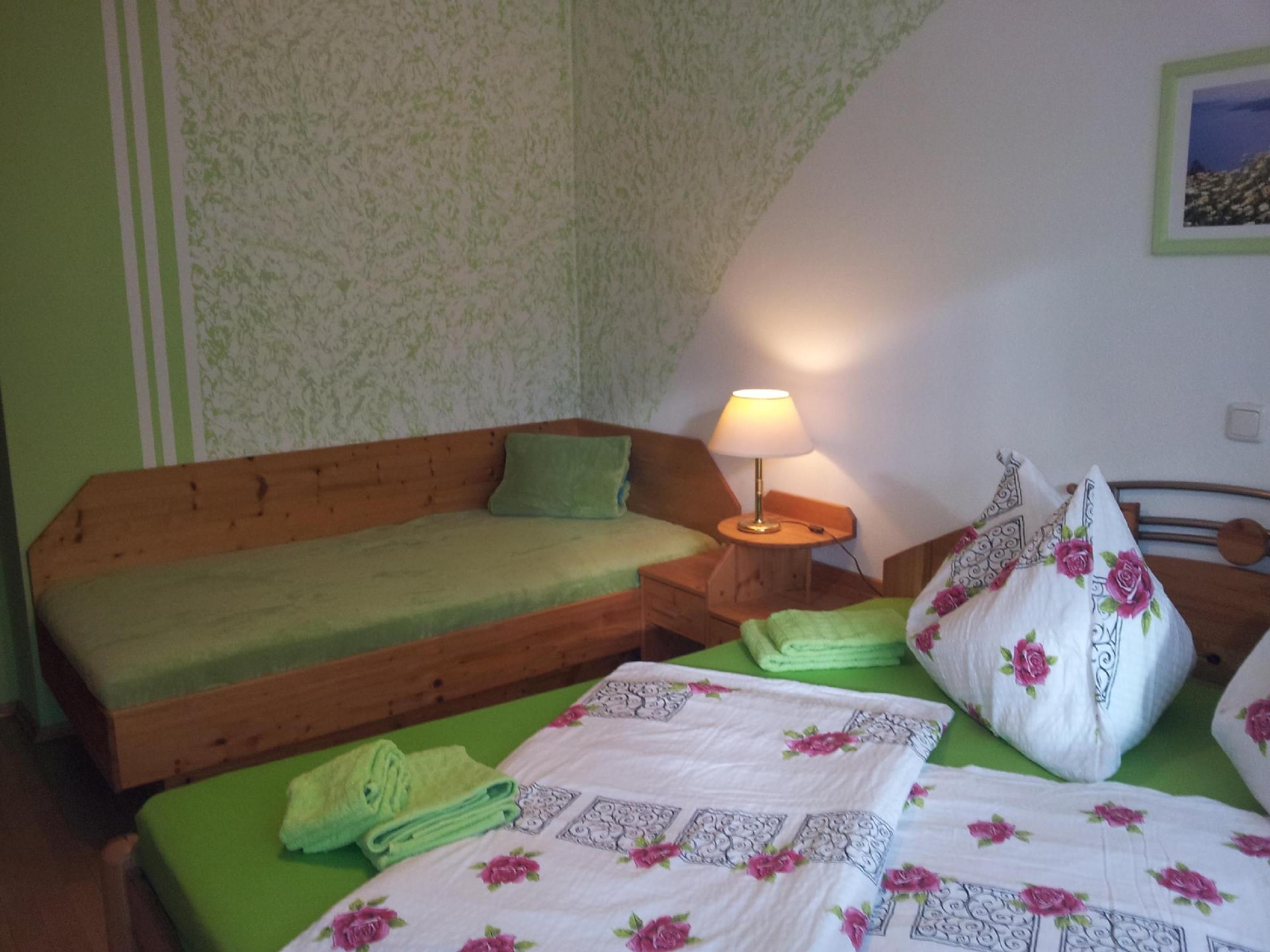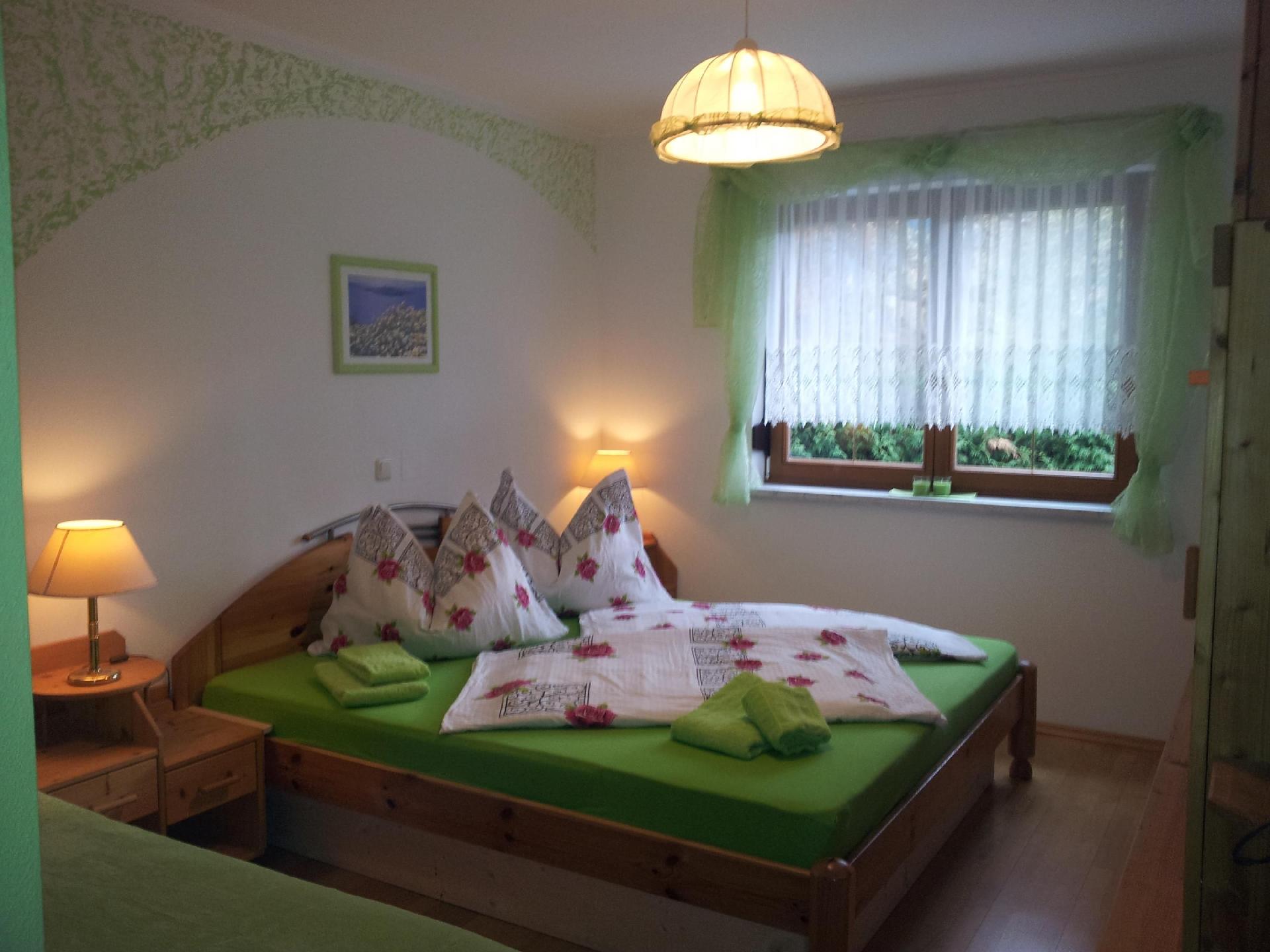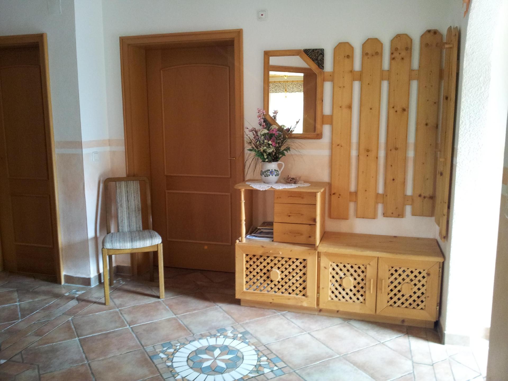 Die komplett eingerichtete Wohnung für bis zu zehn Personen verfügt über einen eigenen Eingang und ist ca. 100m² groß. In der geräumigen Küche finden Sie neben einem Geschirrspüler, Herd, Kaffeemaschine, Toaster auch allen wichtigen Utensilien zum Kochen und Essen vor. Ein gemütlicher Sitzplatz ist ebenfalls vorhanden. Im Wohnzimmer finden Sie neben drei ausziehbaren Doppelcouchen auch eine Wohnwand mit Stereoanlage, TV und SAT, Videorecorder und DVD – Player. Im ersten Schlafzimmer finden Sie ein Doppelbett und zwei Einzelbetten vor. Im zweiten Schlafzimmer sind ebenfalls ein Doppelbett und ein Einzelbett vorhanden. In beiden Schlafzimmern ist jeweils ein TV mit SAT vorhanden. Im großen Bad befinden sich Doppelwaschbecken, Badewanne, extra Dusche, Bidet und eine Waschmaschine. Ein separates WC befindet sich ebenfalls in der Wohnung. Weiterhin verfügt die Ferienwohnung über Fußbodenheizung und Rollläden. In den Wohn- und Schlafräumen ist Parkettboden vorhanden.