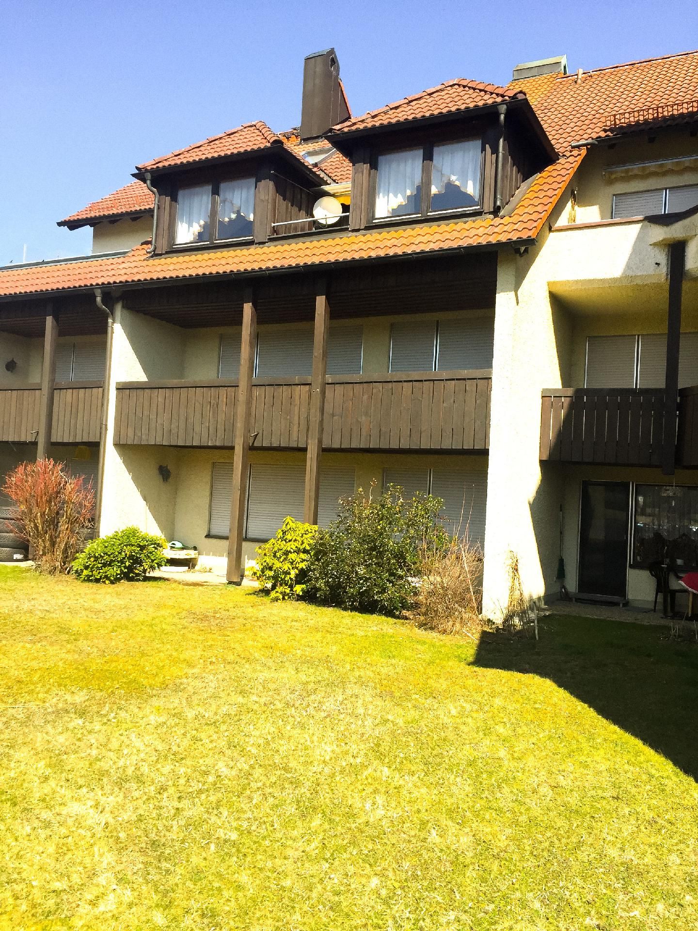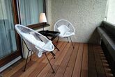 Großer Balkon, Sonnenlage mit Blick zum Berg. Der Balkon bietet eine prima Möglichkeit für Yoga.