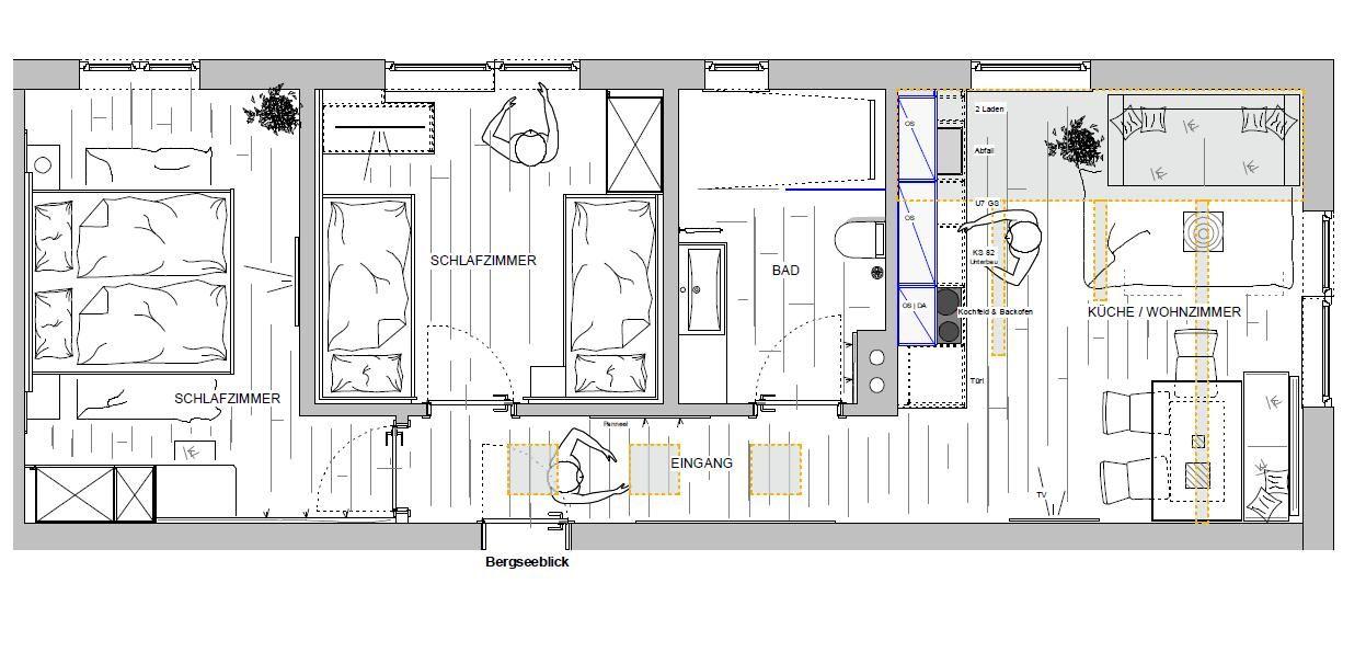Schlafmöglichkeiten: Anzahl Doppelbetten (1,80m Breite): 1; Anzahl Einzelbetten: 2