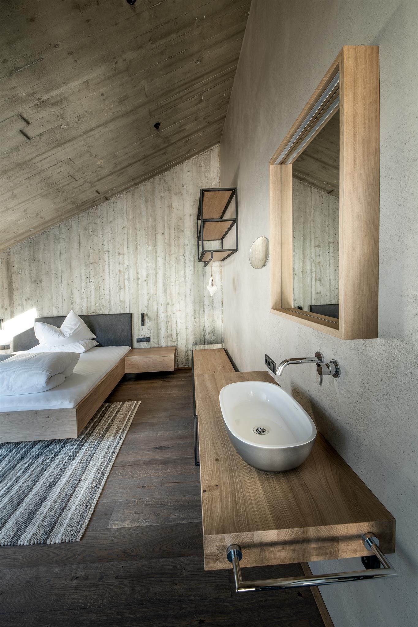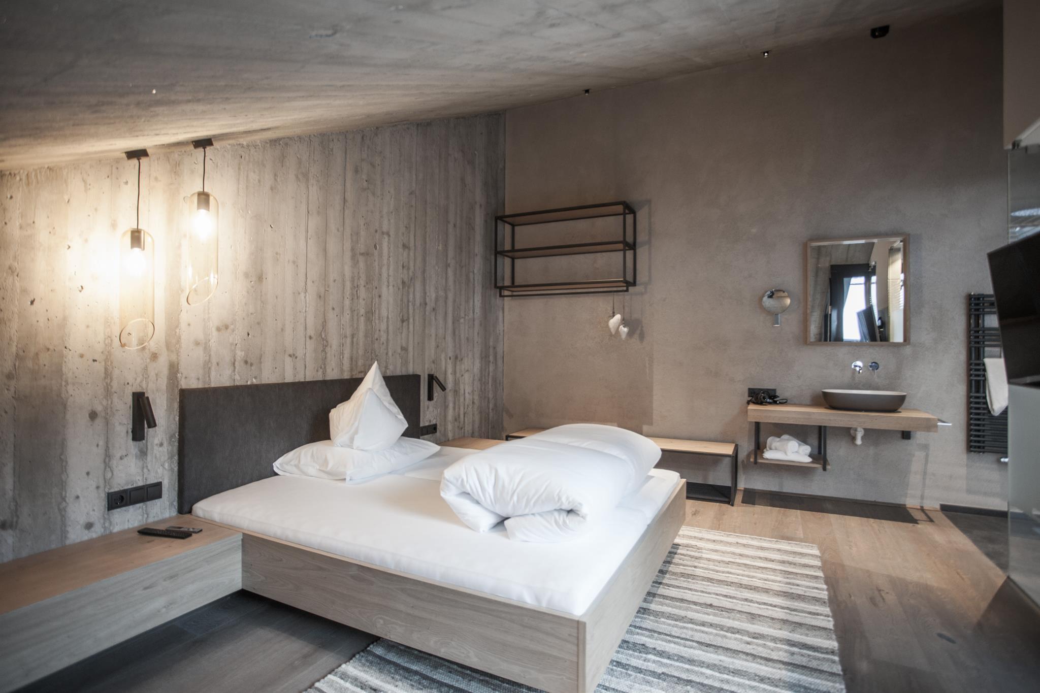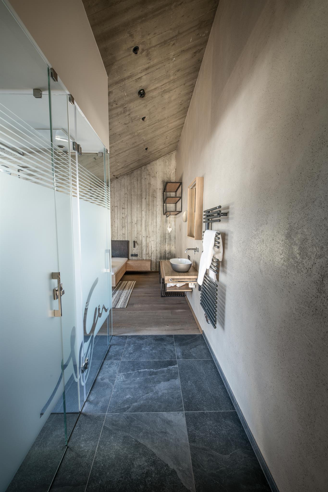 Scheane Suite mit ca. 94 m², freistehender Außenbadewanne auf der Dachterasse und Südbalkon mit Sitzgelegenheiten und Hängesessel (insgesamt ca. 19 m²): Doppelzimmer mit Flat-TV, Leseecke (Zusatzbett), Dusche, Waschbecken und WC, Doppelzimmer mit Flat-TV, Leseecke (Zusatzbett), Dusche und Waschbecken, Badezimmer mit WC, Wohnraum mit Küche, Kochinsel, großen Esstisch, Couch und Fitnessecke