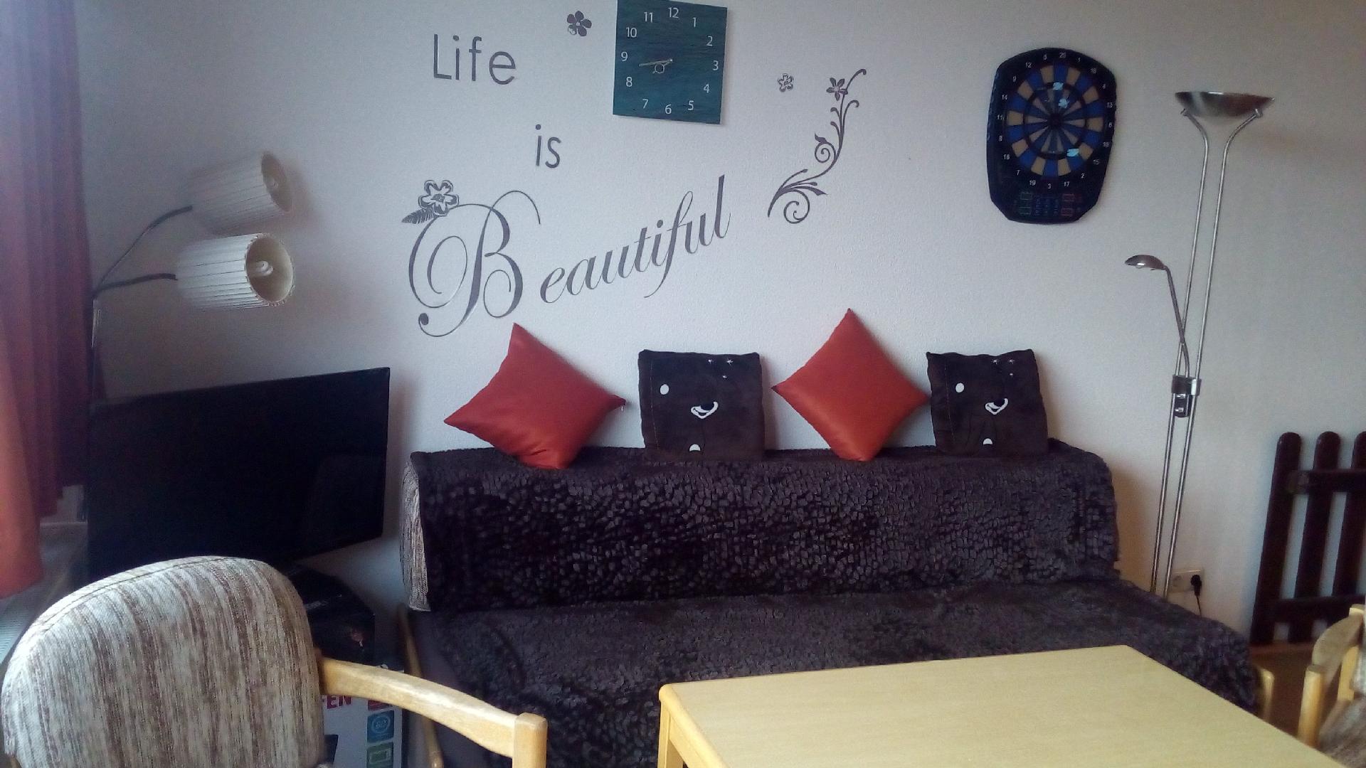 Die freundlich eingerichtete 52 m² Ferienwohnung ist für bis zu 5 Personen eingerichtet. Bettwäsche und Handtücher werden gestellt.