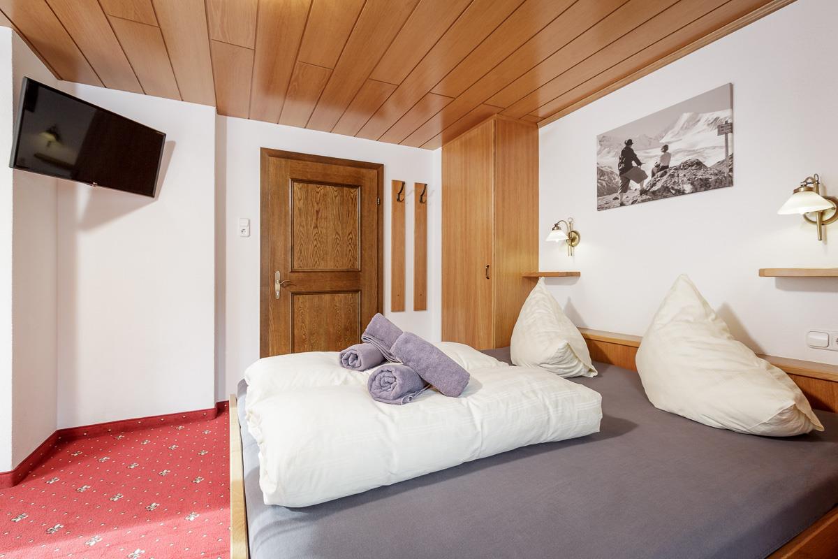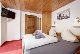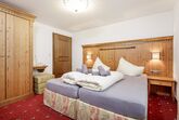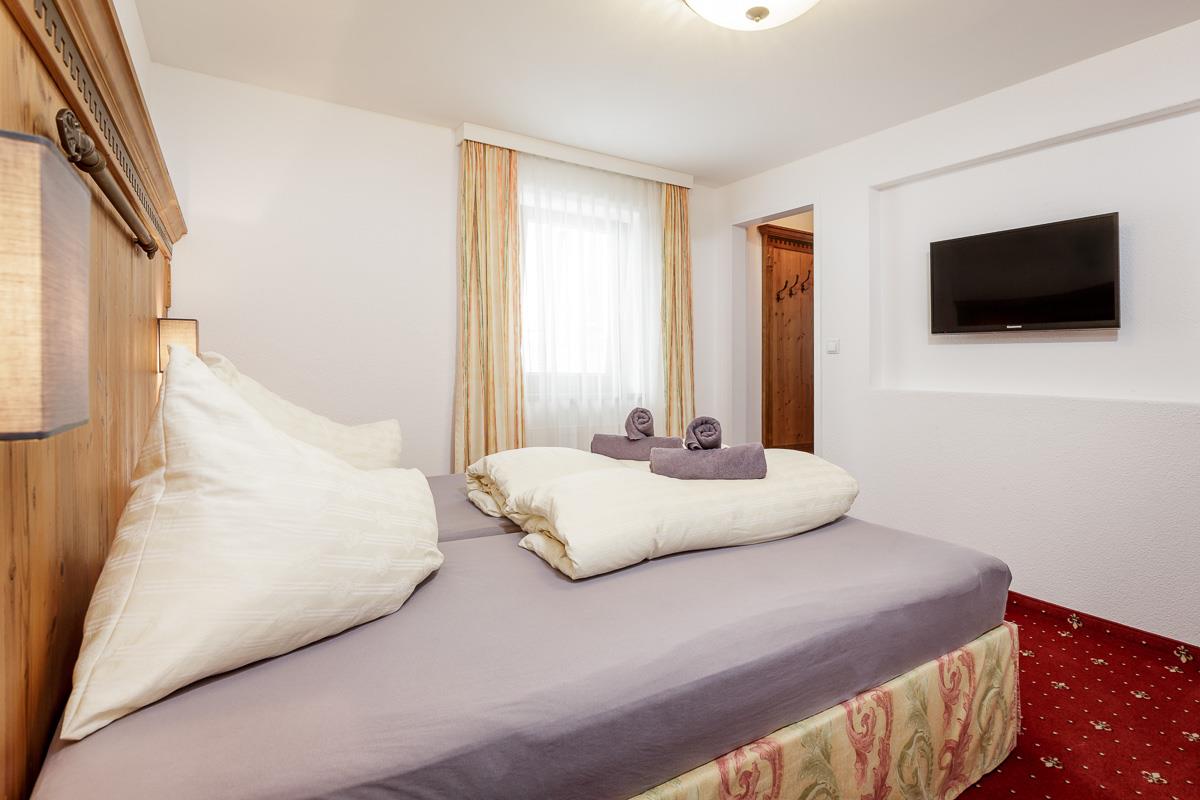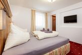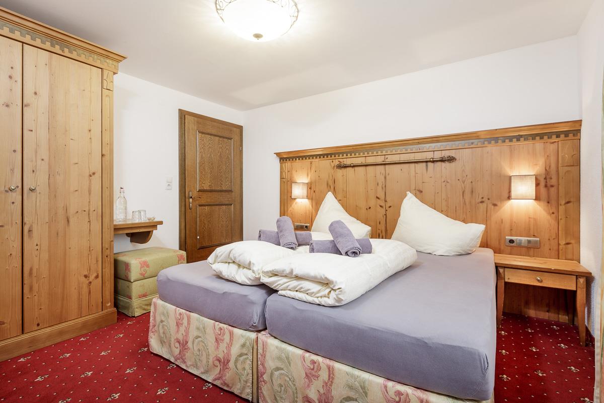 Gemütliche, im Tiroler Landhausstil eingerichtete Doppelzimmer mit Flat-TV, Zimmersafe und Badezimmer mit Dusche/WC/Haarföhn. Auf Anfrage getrennte Betten möglich!