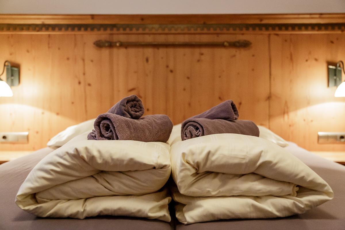 Gemütliche, im Tiroler Landhausstil eingerichtete Doppelzimmer mit Flat-TV, Zimmersafe und Dusche/WC/Haarföhn. Auf Anfrage getrennte Betten möglich!