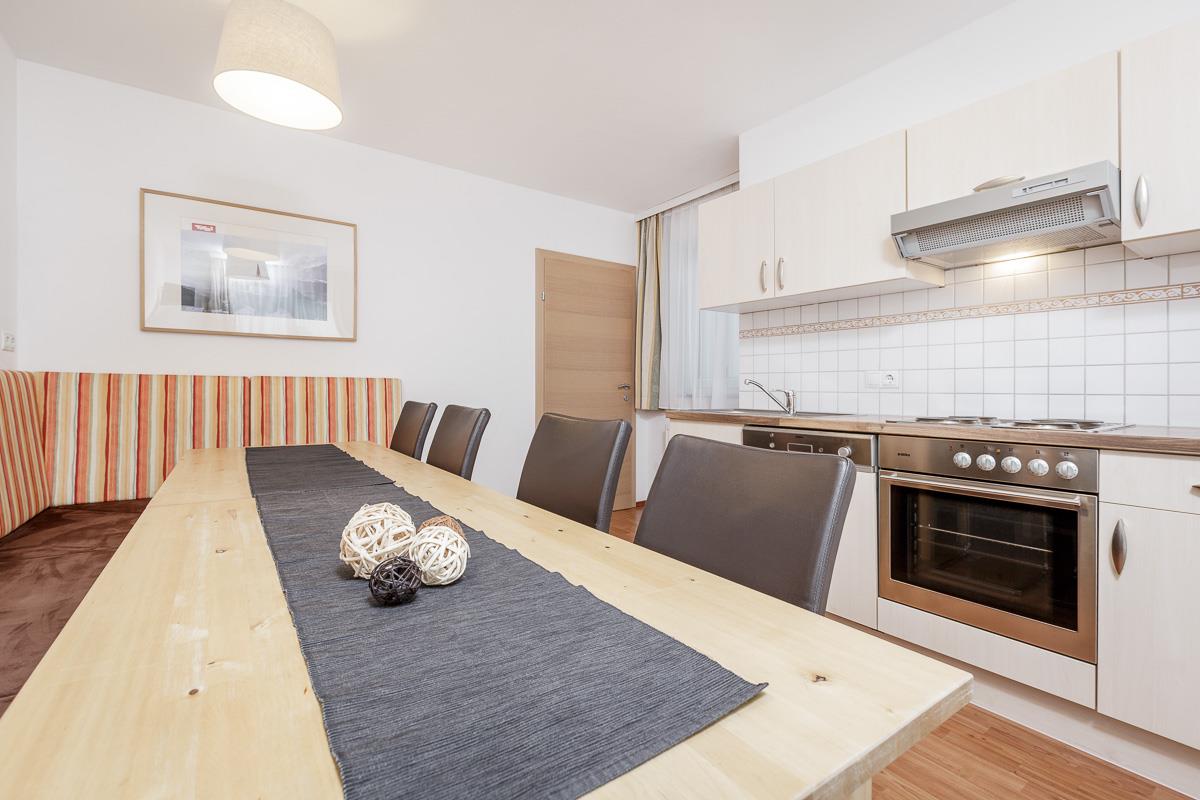 Komfortables Appartement mit drei Doppelzimmer (getrennte Betten möglich) mit Flat-TV und Zimmersafe, 3 Badezimmer mit Dusche/WC und Haarföhn. Abgetrennte Wohnküche mit großzügiger Sitzgelegenheit, Esstisch, voll ausgestattete Küche mit Backofen, Ceranfeld, Spülmaschine, Kaffeemaschine, Wasserkocher, Toaster,.. und Balkon mit freier Aussicht auf die Berge. Größe ca. 100 m².