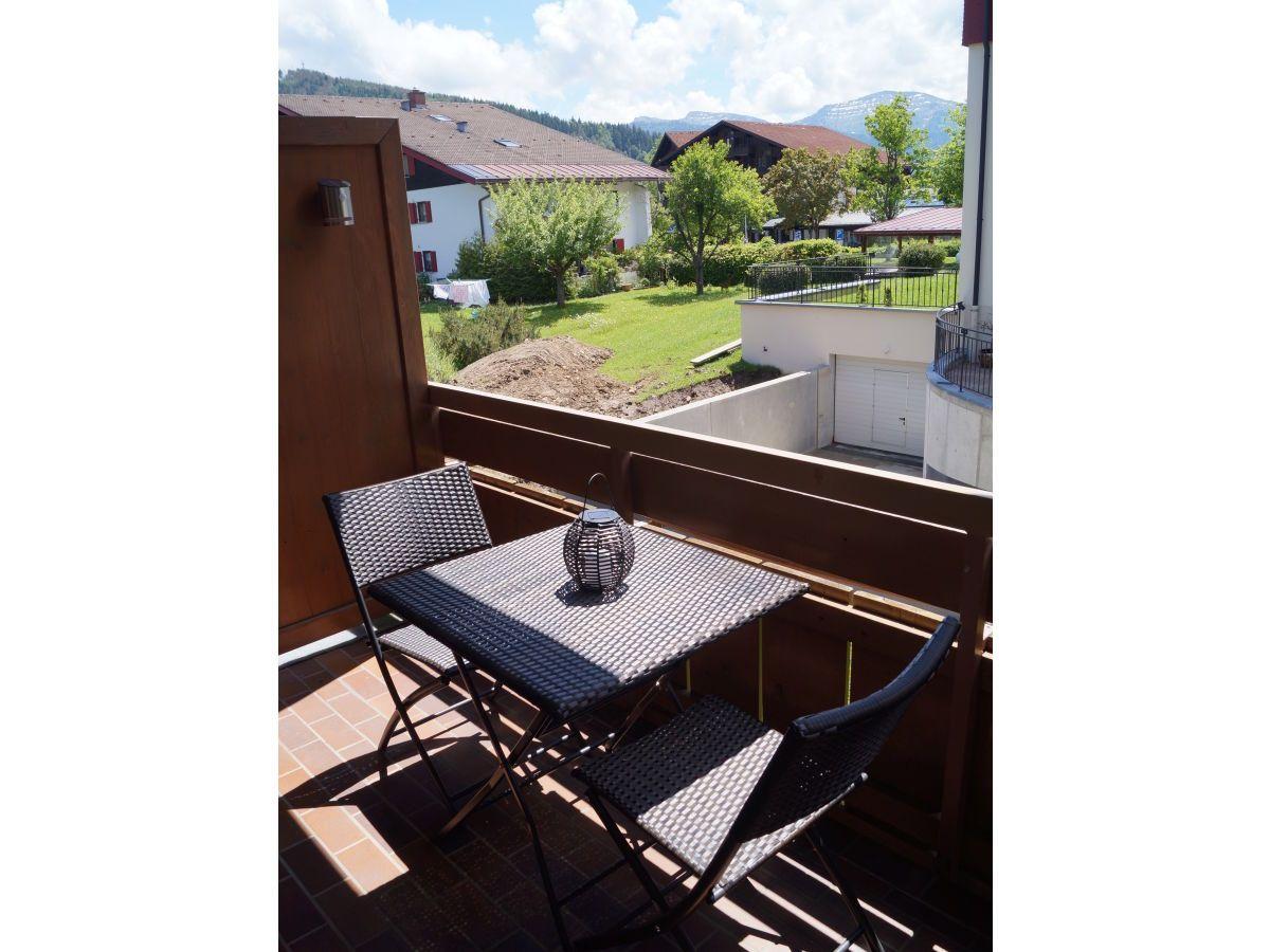 Vom sonnigen Balkon mit Tisch und Stühlen sowie zwei bequemen Liegesesseln genießen Sie einen herrlichen Blick auf die Berglandschaft und den imposanten Hochgrat. Der Balkon ist ausreichend abgesichert, sodass er auch von einem Kleinkind unbedenklich betreten werden kann. Ihre Sportgeräte, auch Fahrräder, finden in einem privaten abschließbaren Kellerraum des Gebäudes Platz. Weiterhin gehört zu Ihrem Urlaubsdomizil ein kostenfrei nutzbarer Außenstellplatz.