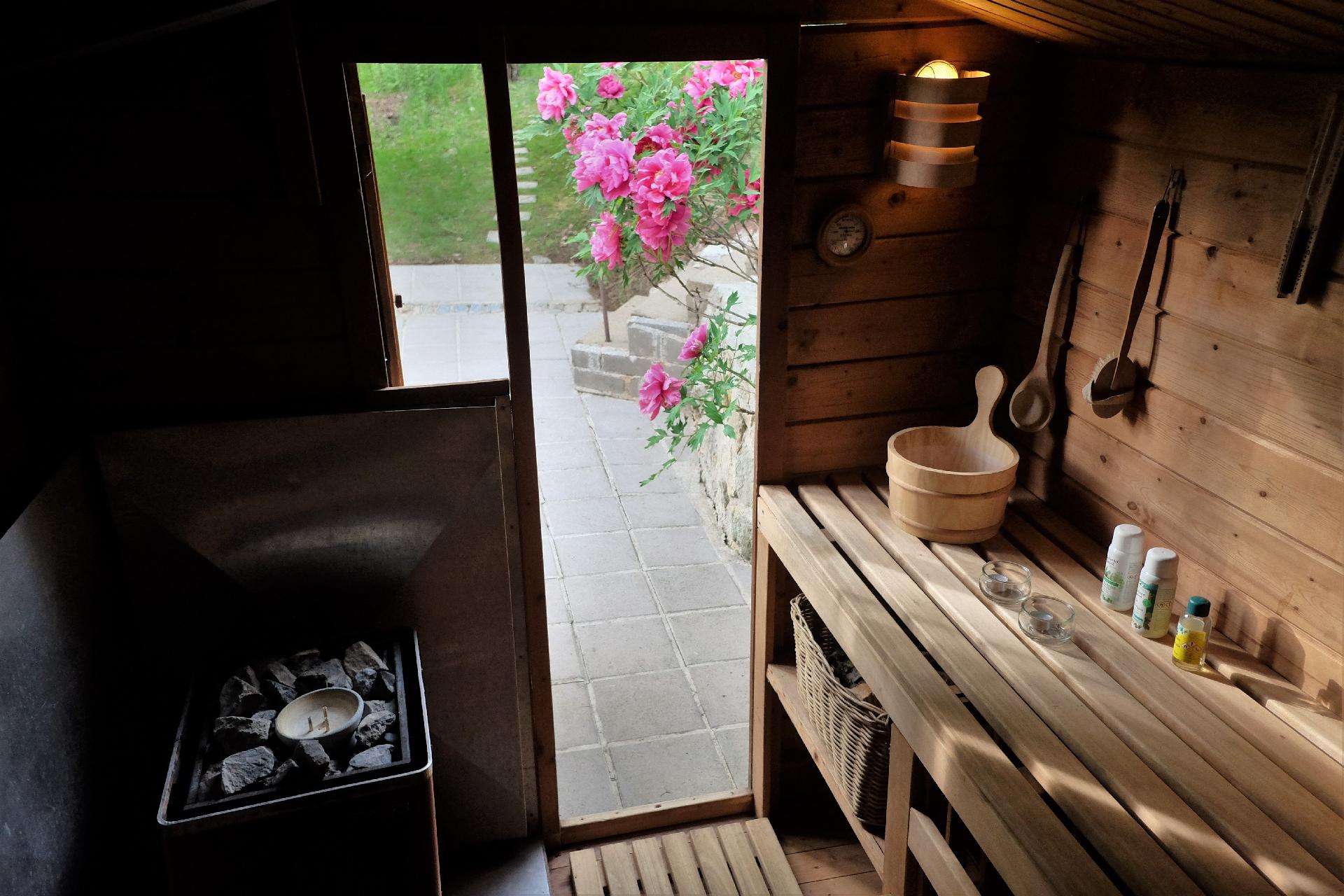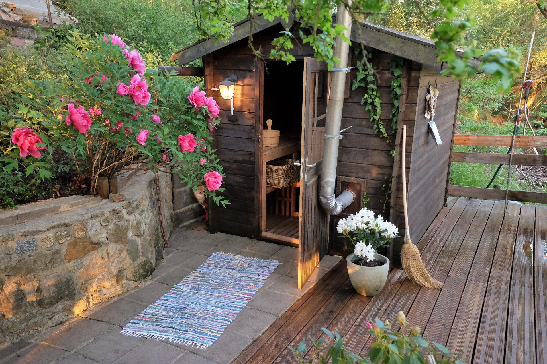 Auf dem Grundstück gibt es auch einen Kinderspielplatz und eine Sauna, die mit Holz zu schüren geht. Holz ist genügend vorhanden. Beides ist selbstverständlich frei und ohne Absprache zugänglich. Auch an einen Parkplatz für unsere Gäste haben wir gedacht.