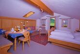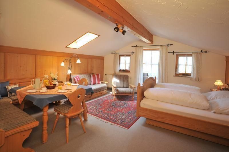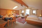 Die großräumige und komfortable Ferienwohnung, mit herrlichem Bergblick, ist hell und freundlich eingerichtet. Sie hat eine Wohnfläche von ungefähr 50 m² und befindet sich im zweiten Obergeschoss in süd-west Lage. Die Wohnung ist ausgestattet mit einer separaten und vollständig ausgestatteten Küche, die über einen 4-Plattenherd, Backofen und einen Kühlschrank verfügt. Es gibt ein Badezimmer mit Dusche/WC, ein großes Schlafzimmer mit Doppelbett (1,80 m x 2,00 m) und einen großen Wohnraum mit Essecke und Schrankbetten.