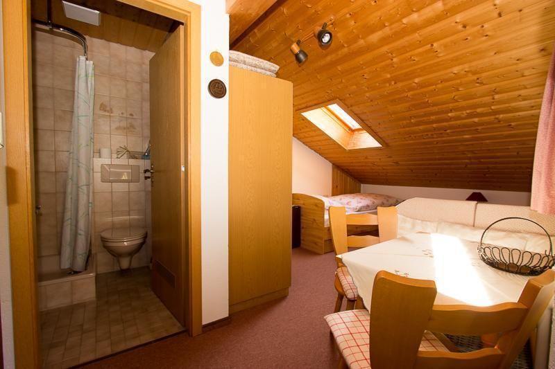 Diese liebevoll eingerichtete Ferienwohnung gemeinsam mit den kleinen Doppelzimmer bietet Platz für zwei Erwachsene und zwei Kinder bzw. Jugendliche oder einen Erwachsenen. Die Unterkunft verfügt über ein Wohnzimmer mit zusätzlicher Eckbank und einer kleinen, separaten Küchenzeile und ein Bad mit Dusche und WC. Ein neu eingerichtetes Schlafzimmer mit einem Doppelbett in der Größe 180 x 200 cm komplettiert die Wohnung. Zur Ausstattung der Wohnung zählen Geschirr, Bettwäsche, Handtücher, Sat.-TV und kostenloses WLAN. Ihr Kind würde auf einem Zustellbett (90 x 190 cm) im Wohnzimmer schlafen.