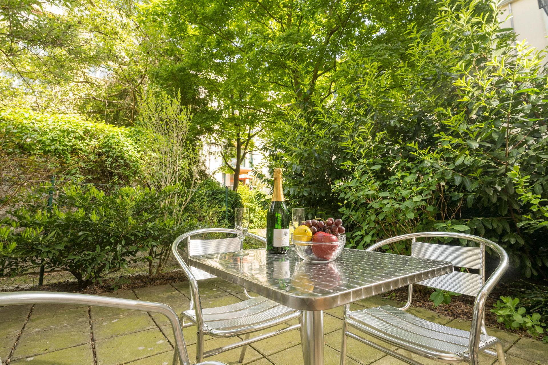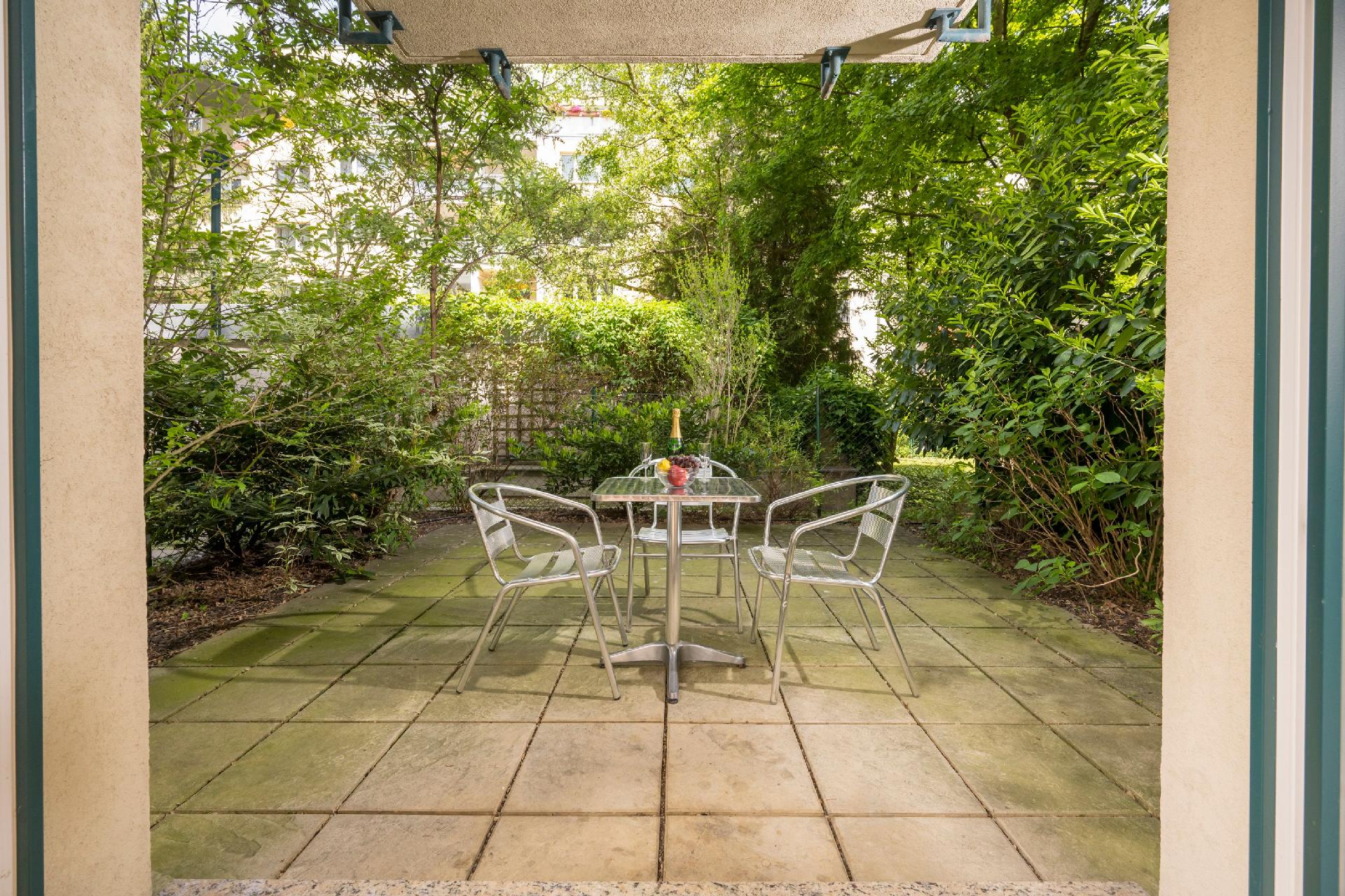 Im Außenbereich erwartet Sie ein privater Garten, der ausschließlich Ihnen zur Verfügung steht. Die an den Garten angrenzende Terrasse ist der ideale Ort, um bei einem Kaffee am Morgen oder einem entspannten Abendessen frische Luft zu genießen. Dieser grüne Rückzugsort inmitten der Stadt bietet eine seltene Gelegenheit, in Ihren eigenen vier Wänden Ruhe und Entspannung zu finden.